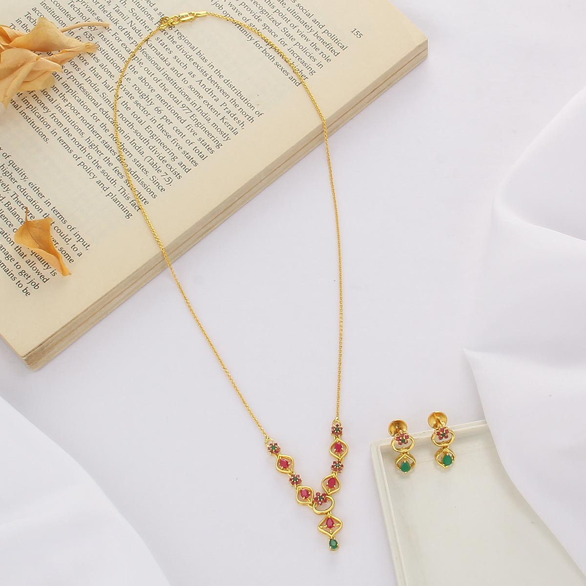 This 92.5 Silver, 24 kt Gold-Plated Long Necklace is adorned with Semi-precious Stones for a luxurious aesthetic.