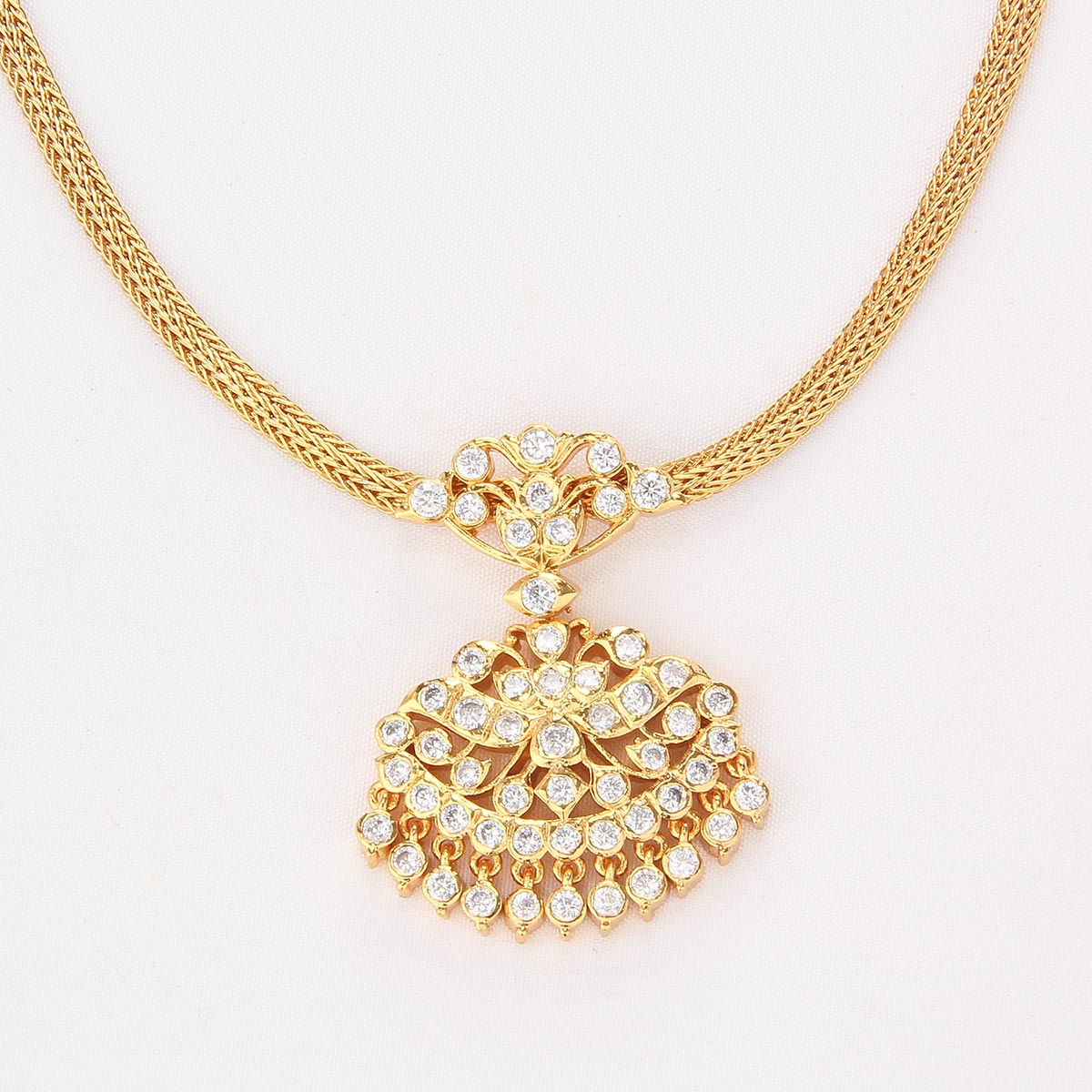 This 92.5 Silver, 24 kt gold-plated, stylish Necklace is studded with semi-precious stones to make a stunning statement. Perfect for any special occasion.