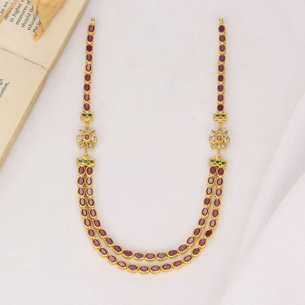 This 92.5 Silver, 24 kt gold-plated, stylish Necklace is studded with semi-precious stones to make a stunning statement. Perfect for any special occasion.