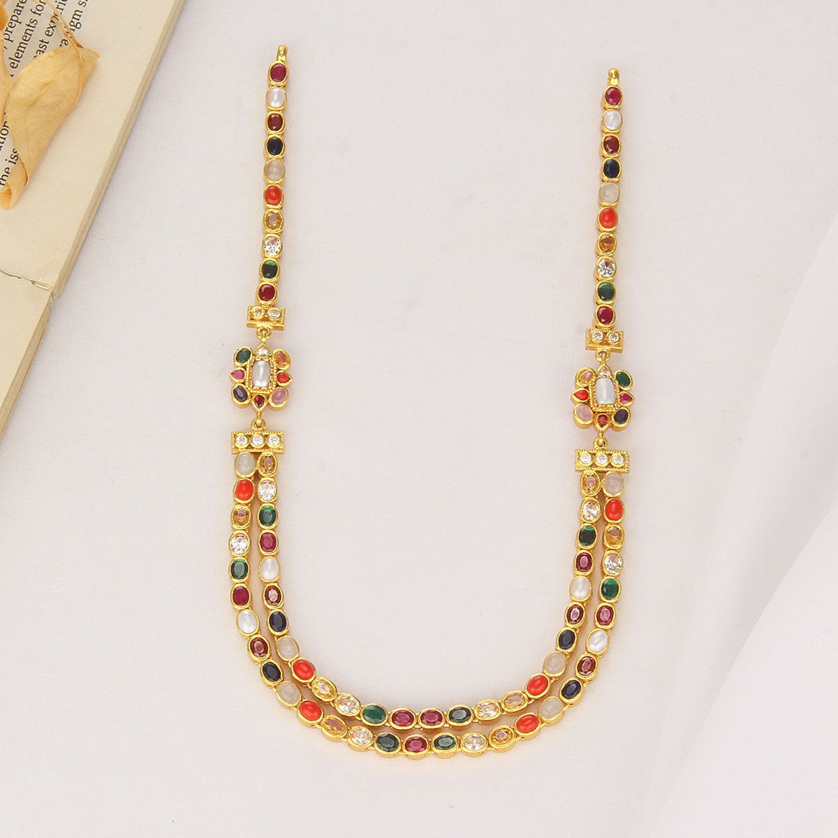This 92.5 Silver, 24 kt gold-plated, stylish Necklace is studded with semi-precious stones to make a stunning statement. Perfect for any special occasion.