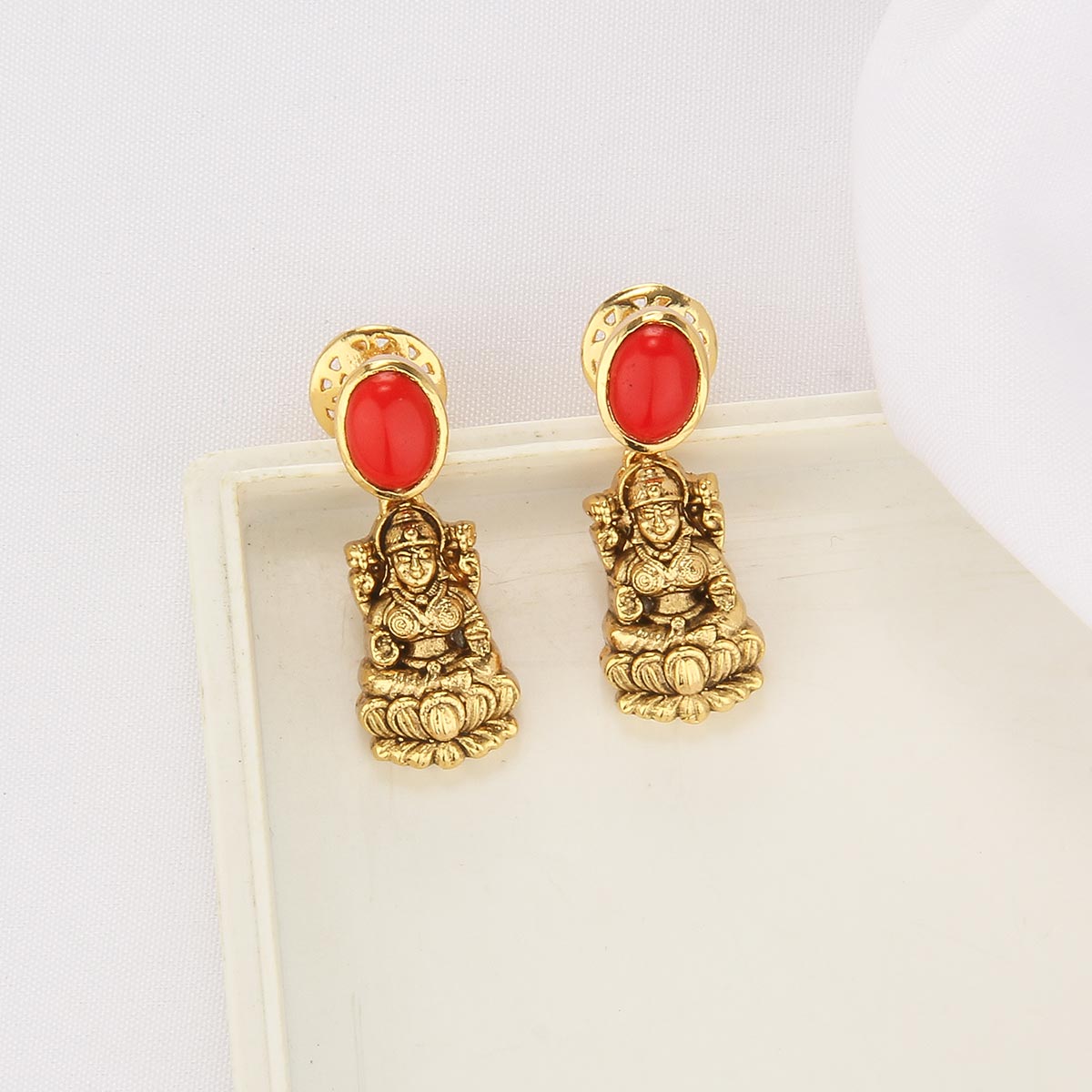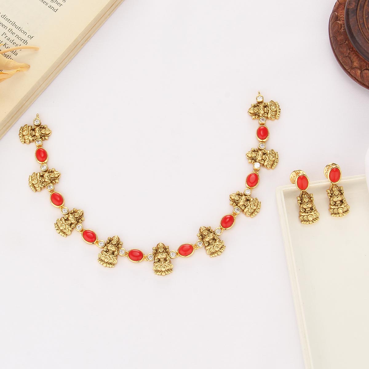 This necklace set is crafted from 92.5 Sterling Silver and features 24-karat gold plating and semiprecious stones.