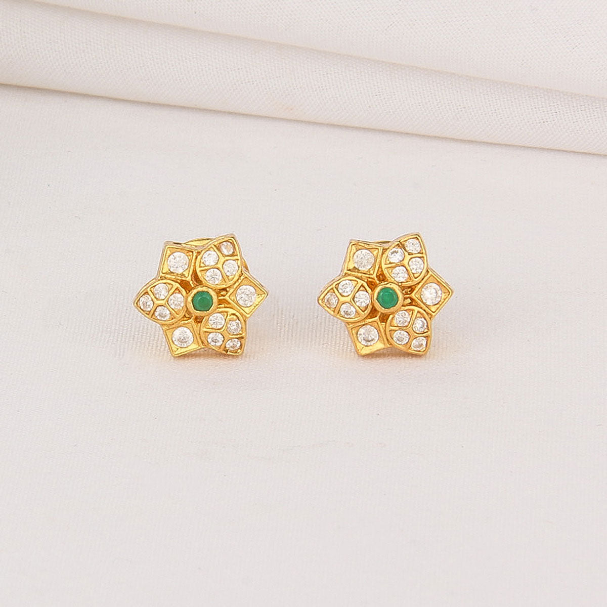 Fabricated from 92.5% sterling silver and 24-karat gold plating, these earrings are adorned with semi-precious stones.