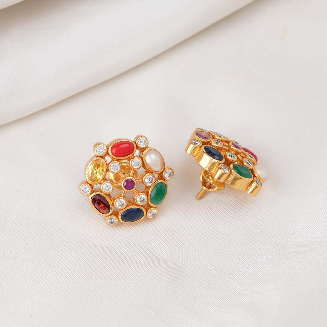 This 92.5 Silver, 24 kt gold-plated stylish Earring is studded with semi-precious stones to make a stunning statement. Perfect for both formal and casual occasions.
