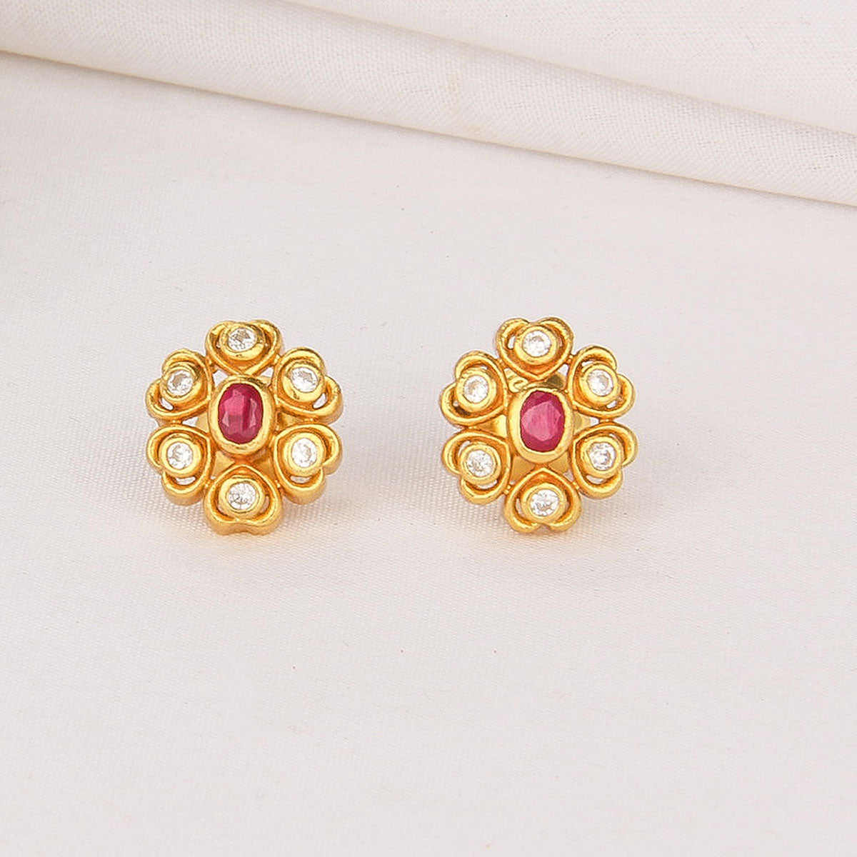 Fabricated from 92.5% sterling silver and 24-karat gold plating, these earrings are adorned with semi-precious stones.