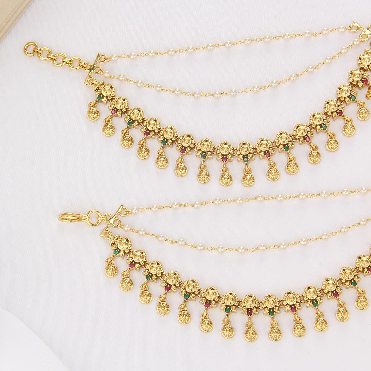 Crafted from 92.5 Sterling silver and 24kt gold-plated, Maatal is studded with Semi precious stones to create a stunning look.