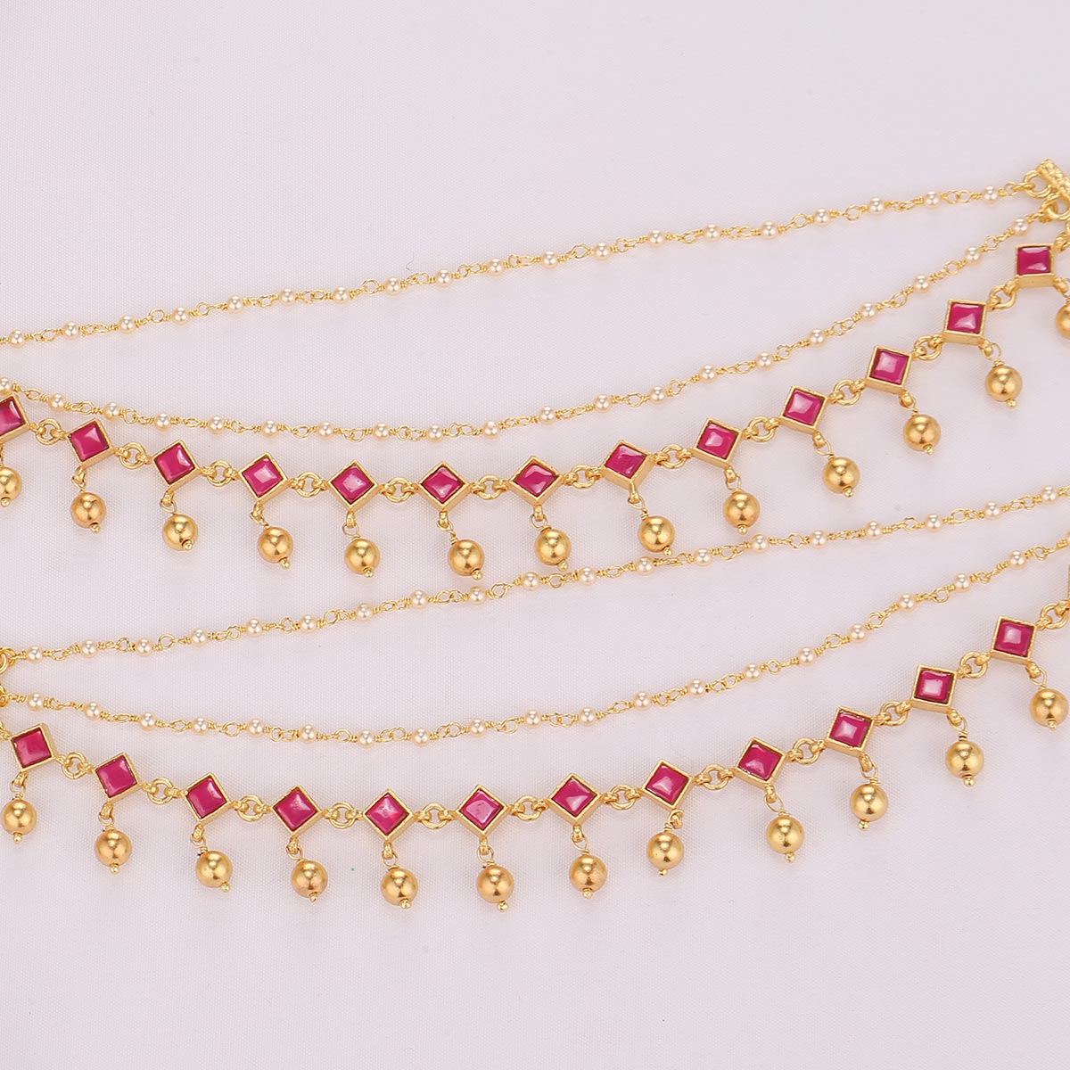 Crafted from 92.5 Sterling silver and 24kt gold-plated, Maatal is studded with semi-precious Kundan stones to create a stunning look.