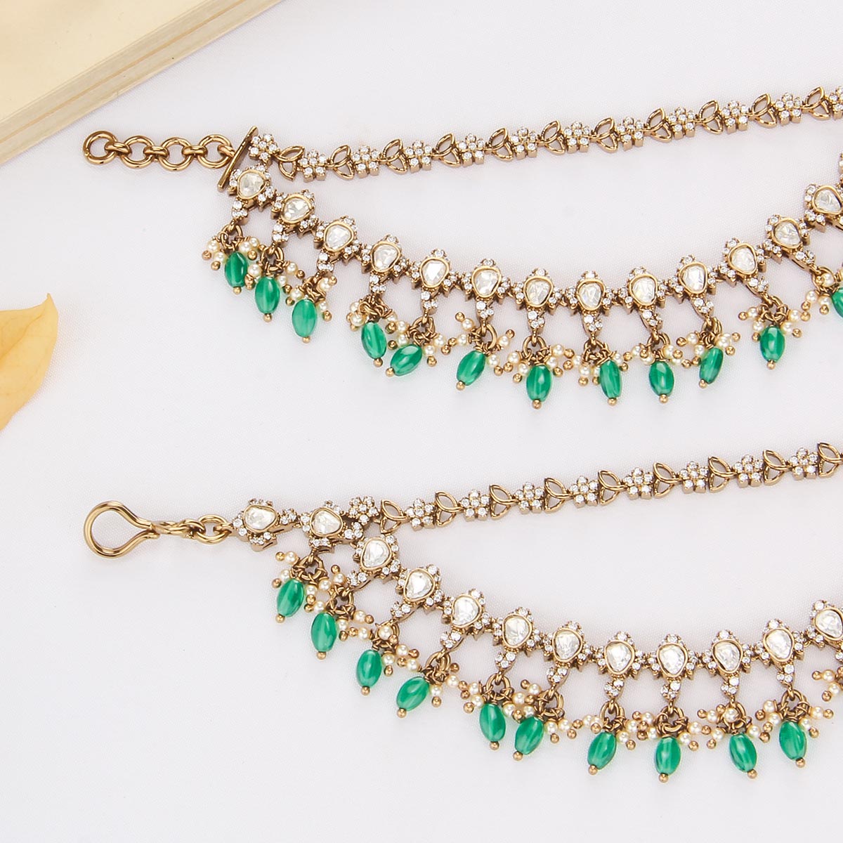 92.5 Silver, Victorian Maangtikka studded with Gem Stones and Pearls.