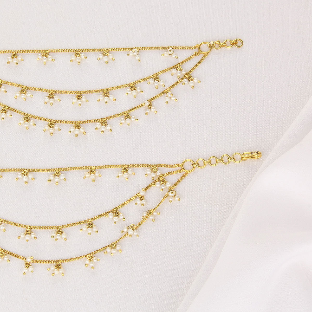 Crafted from 92.5 Sterling silver and 24kt gold-plated, Maatal is studded with Pearls to create a stunning look.