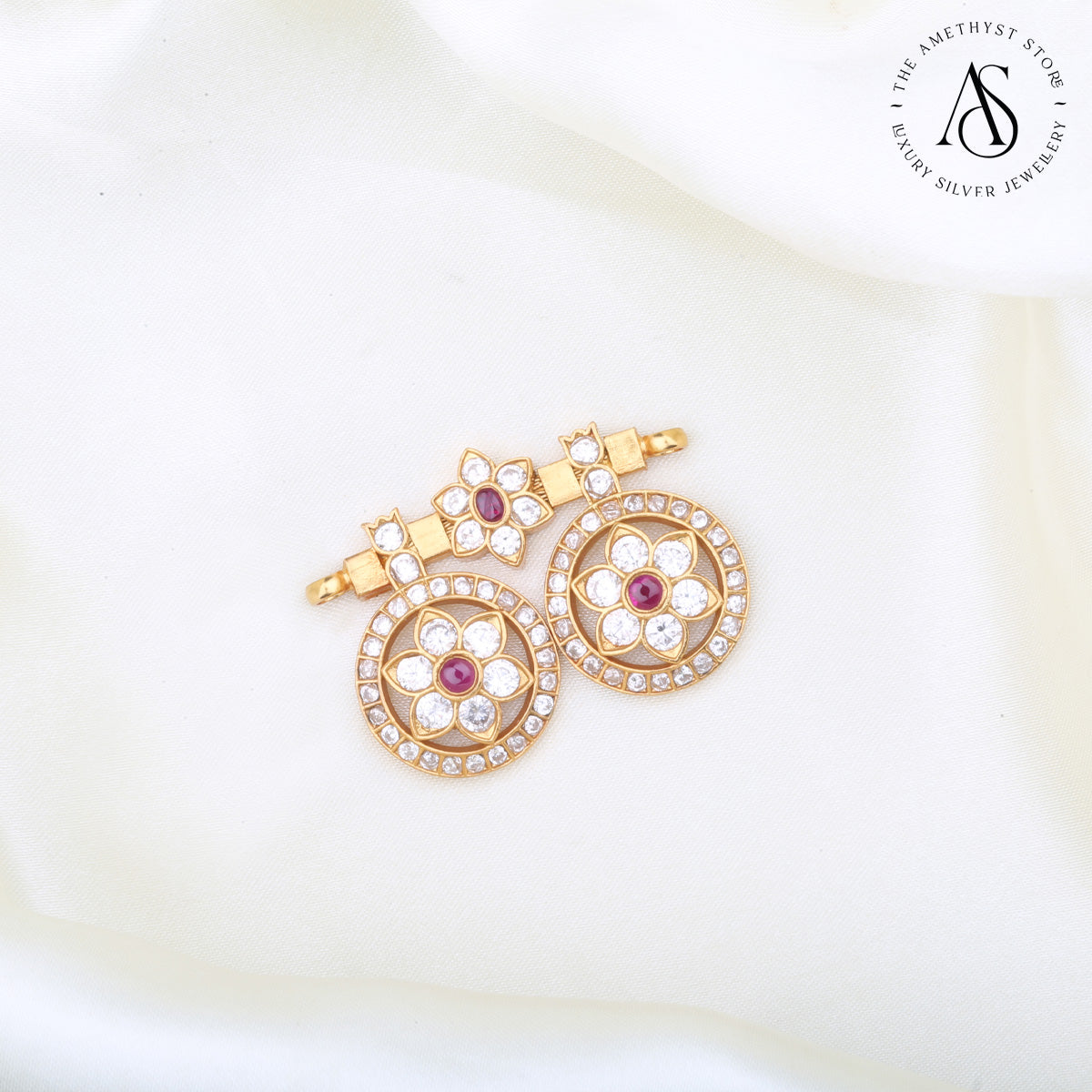 This 92.5 Silver, 24 kt gold-plated stylish Pendant is studded with semi-precious stones to make a stunning statement. Perfect for any special occasion.