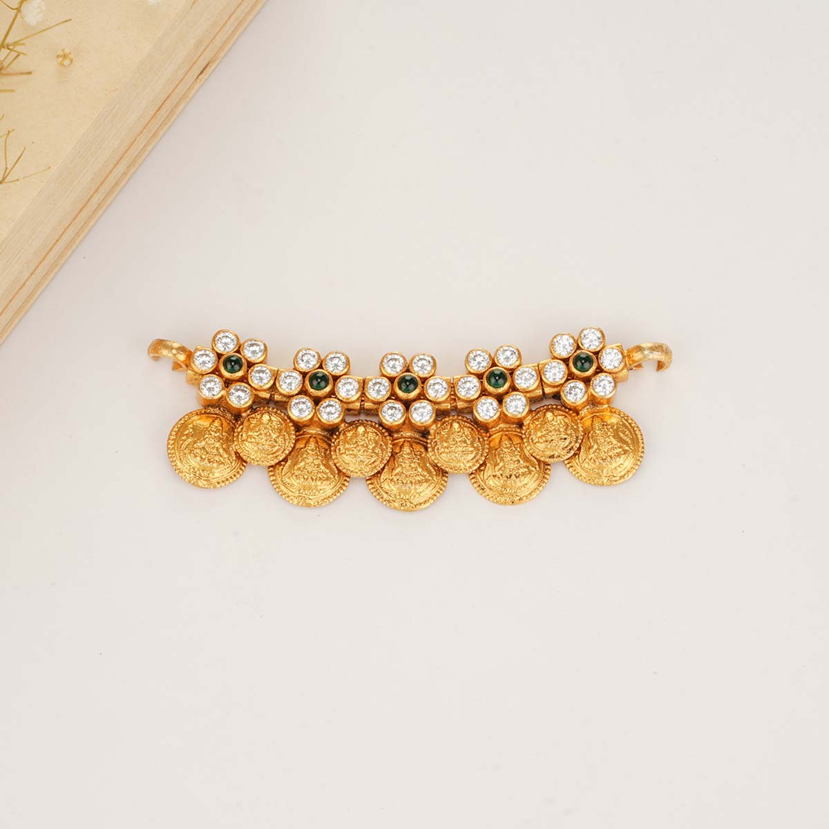 This exquisite Pendant with side hooks is crafted from 92.5 silver, adorned with a 22KT gold-plated pendant that gleams with sophistication.