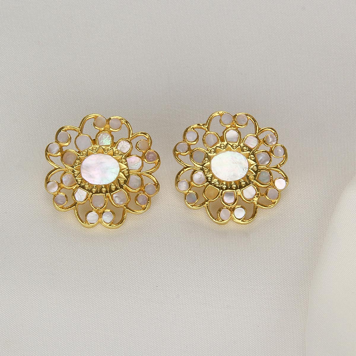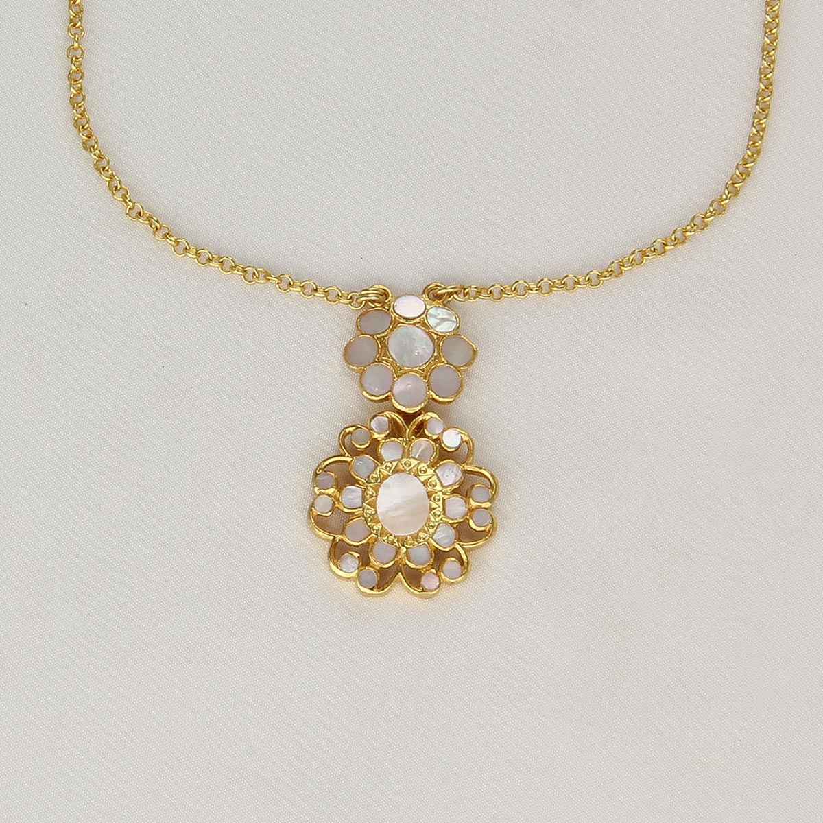Constructed from 92.5 Silver, this 24kt Gold Plated Necklace set is decorated with stunning Mother of Pearls for a luxe finish.