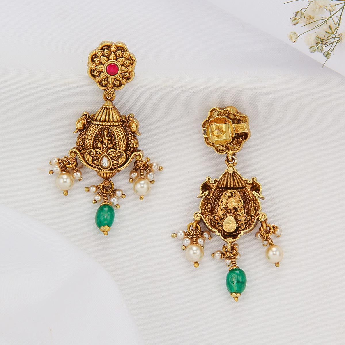 92.5 silver, 24kt gold plated Earrings studded with Semi-Precious stones.