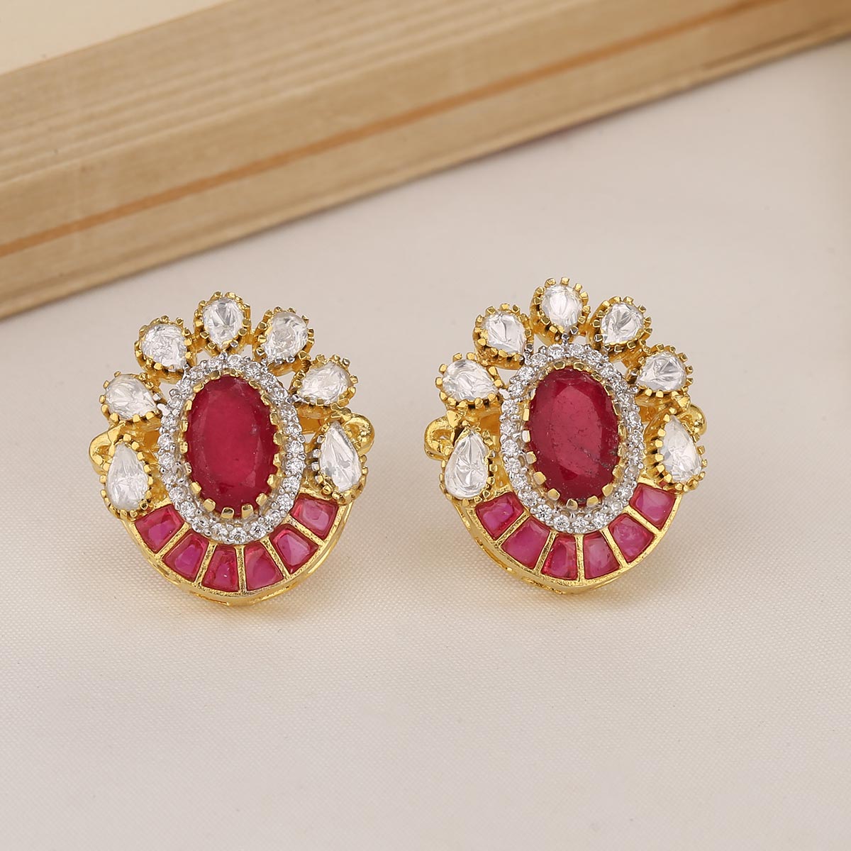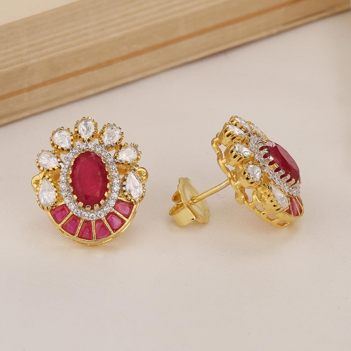 Fabricated from 92.5% sterling silver and 24-karat gold plating, these earrings are adorned with Moissanite Stones.