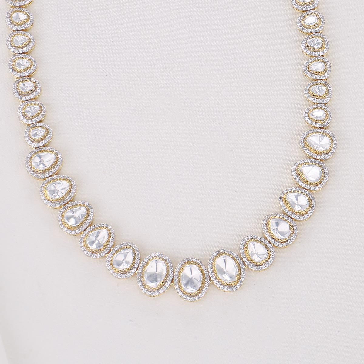 This breathtaking set of Majestic Look Nagas necklaces is crafted from 92.5 Silver, 24kt Gold Plated, and is studded with Moissanite stones for a truly dazzling effect. Unparalleled in design and style, this exquisite set makes a grand statement.