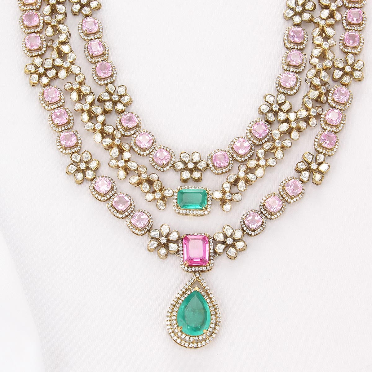 Elevate your style with this Majestic Look necklace Set. Crafted from 92.5 Silver and 24kt Gold Plated, this set boasts exquisite Lab Grown Designed for a dazzling effect.