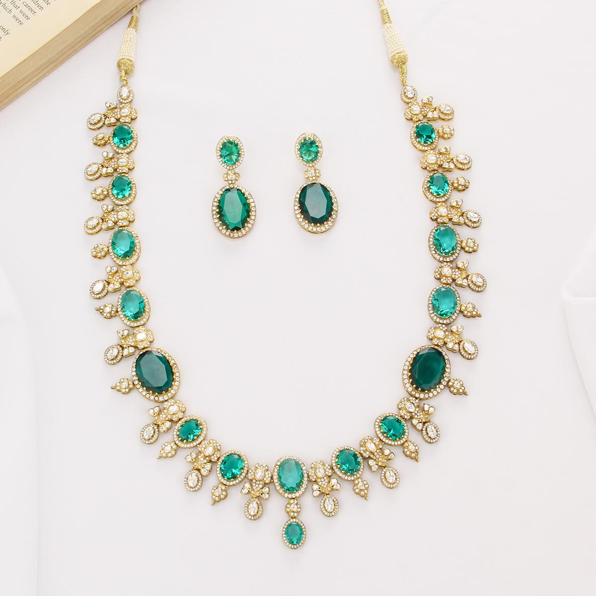 This necklace Set is crafted from 92.5 Silver and features 24-karat gold plating.