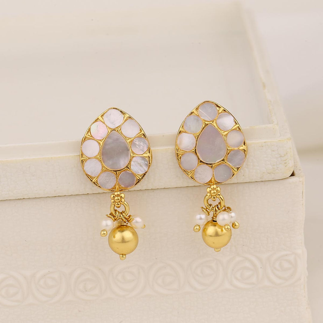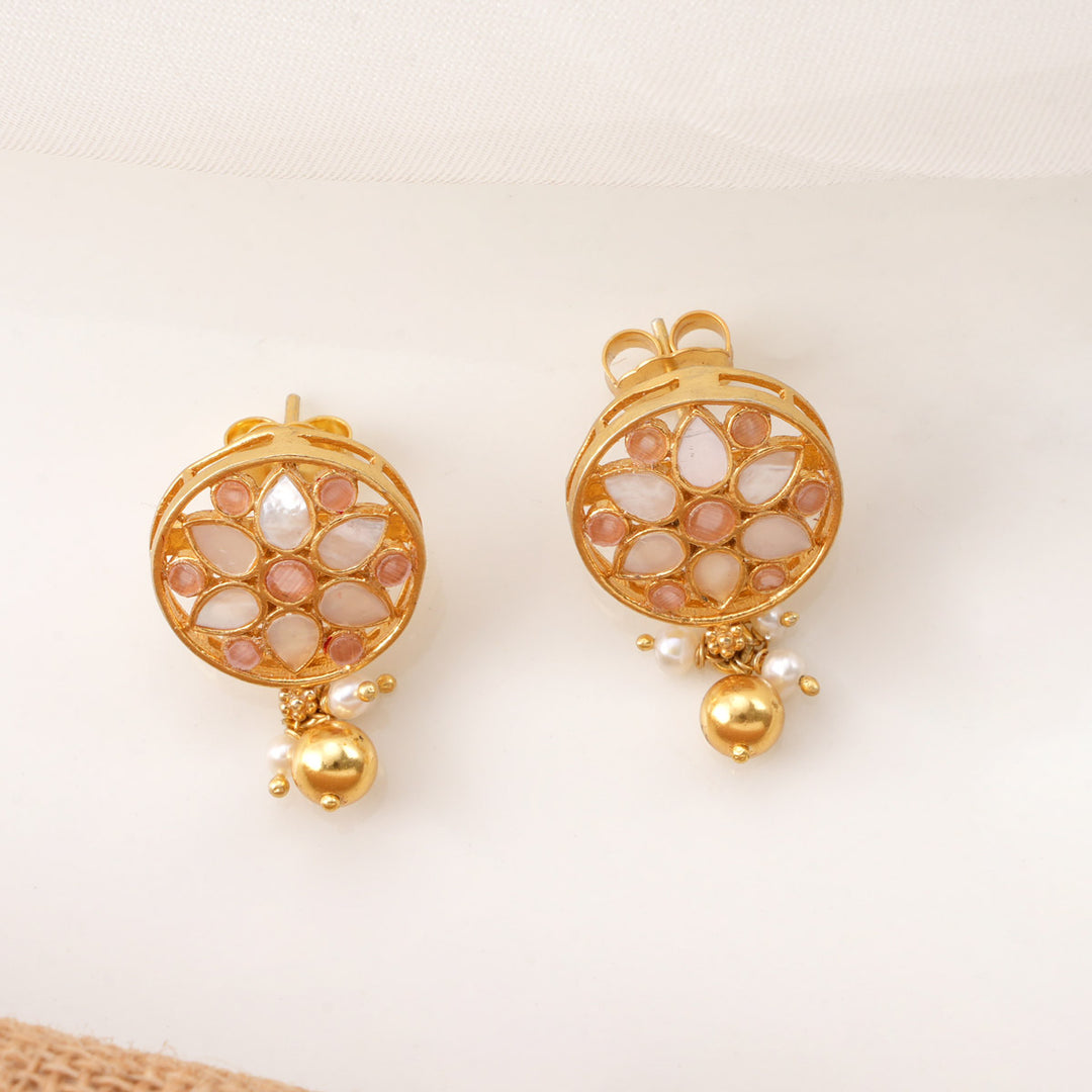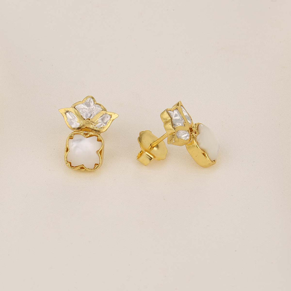 Gold Plated Silver Earrings with Pearls | Silver Pearls Jhumkas | Gold Plated Silver Pearls Studs