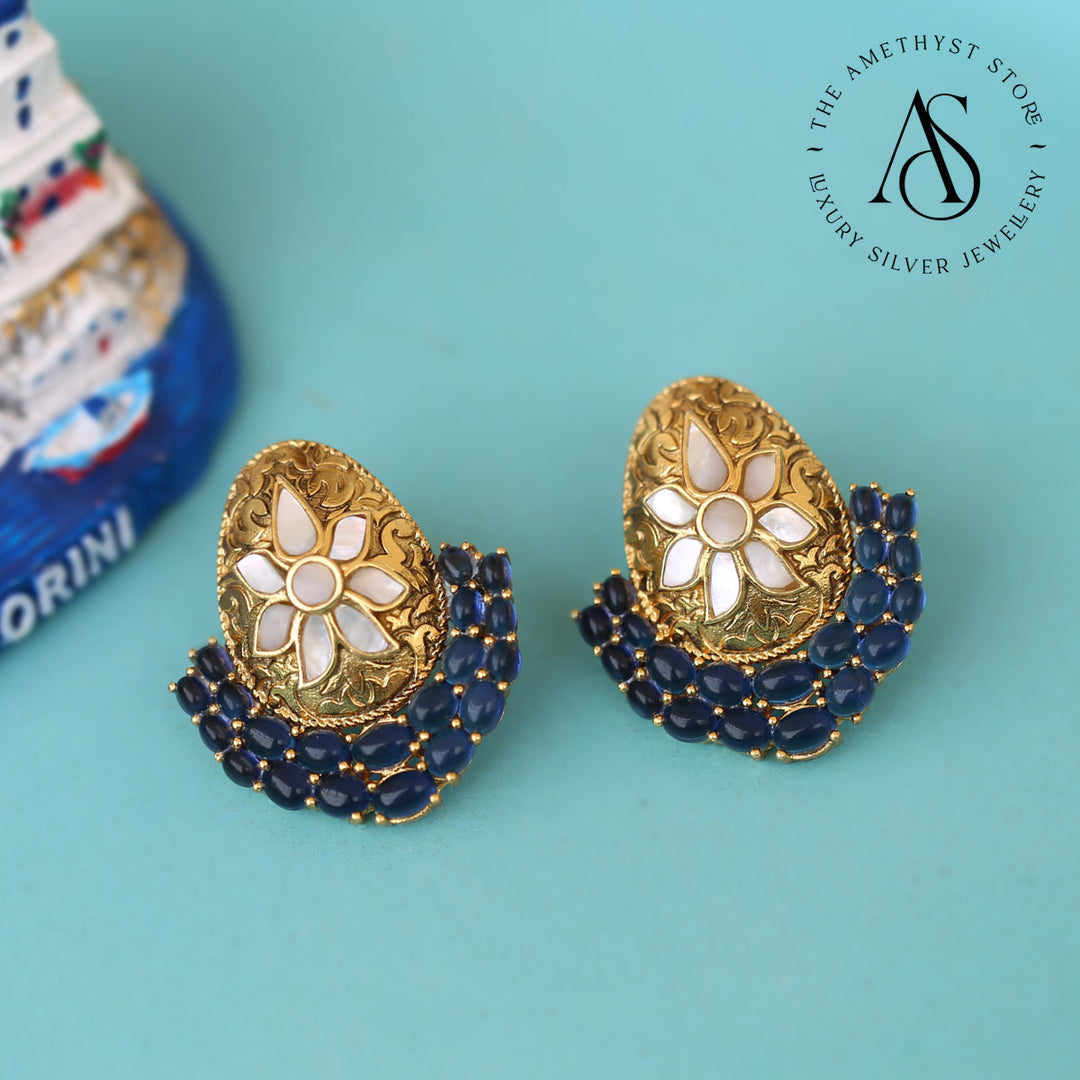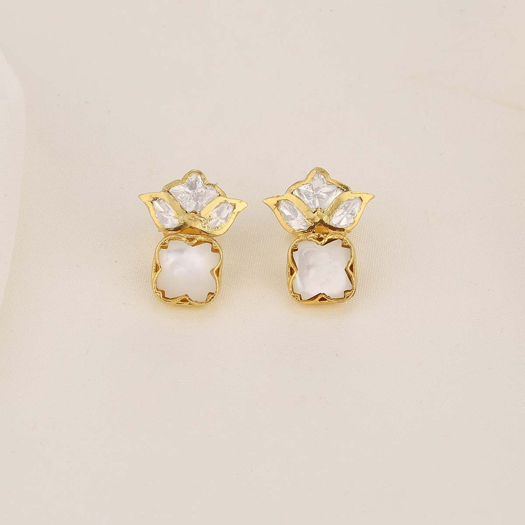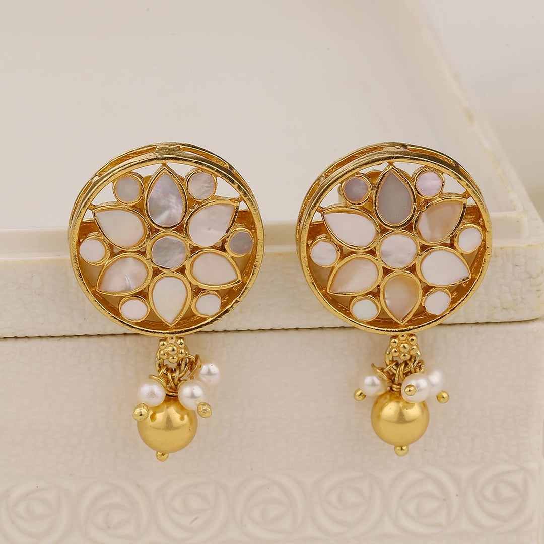 Gold Plated Silver Earrings with Pearls | Silver Pearls Jhumkas | Gold Plated Silver Pearls Studs