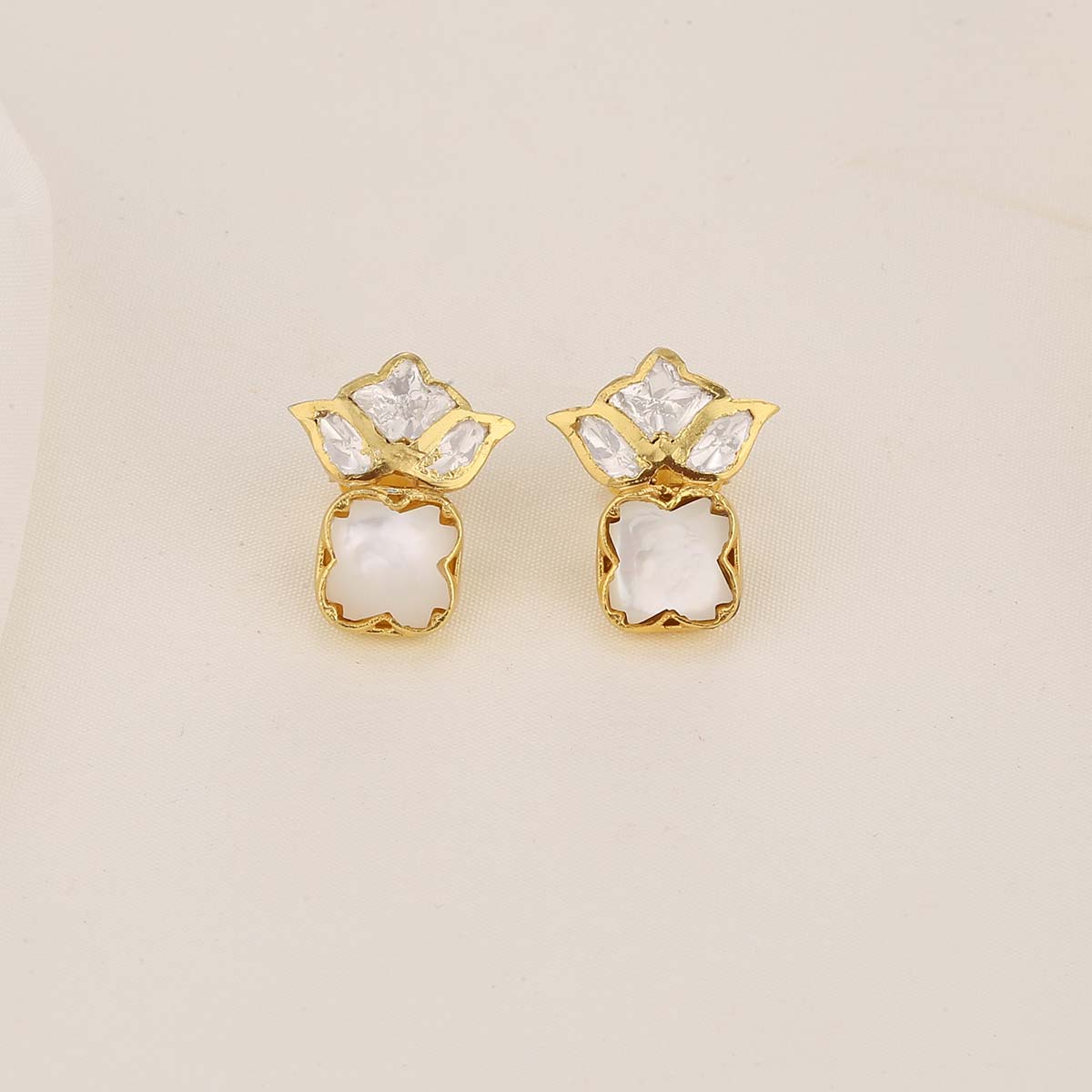 92.5 Silver Gold Plated Earrings studded with Kundan and mother of pearls.