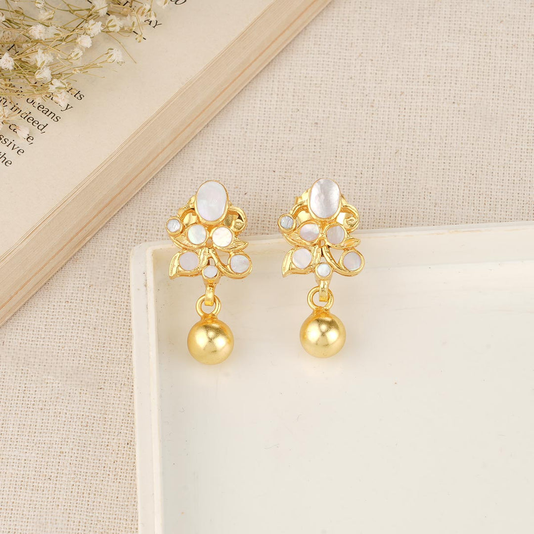 92.5 Silver,22kt Gold Plated Earrings studded with mother of pearls.