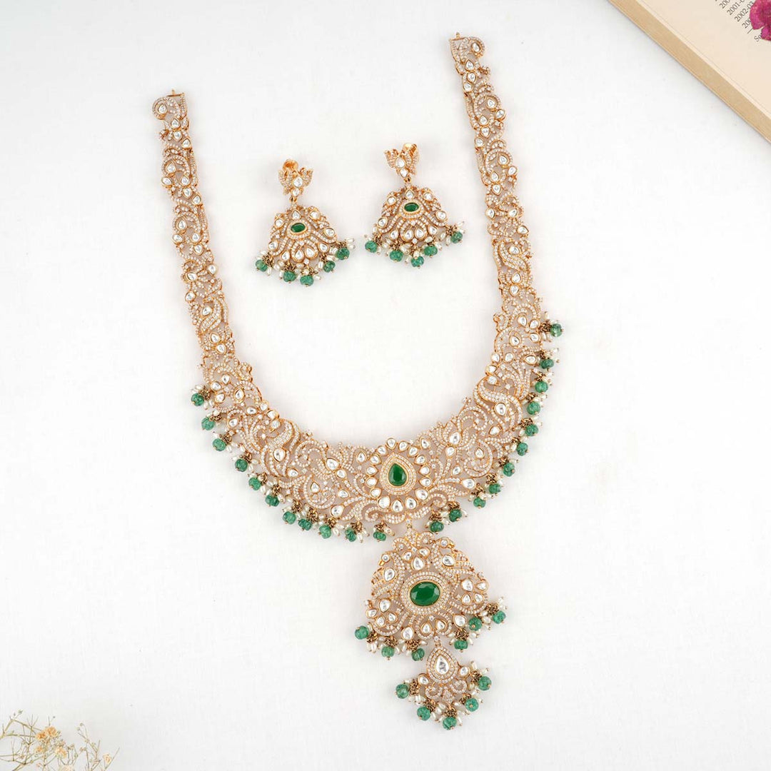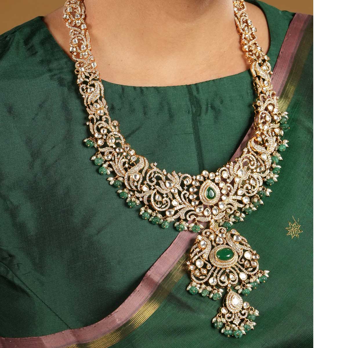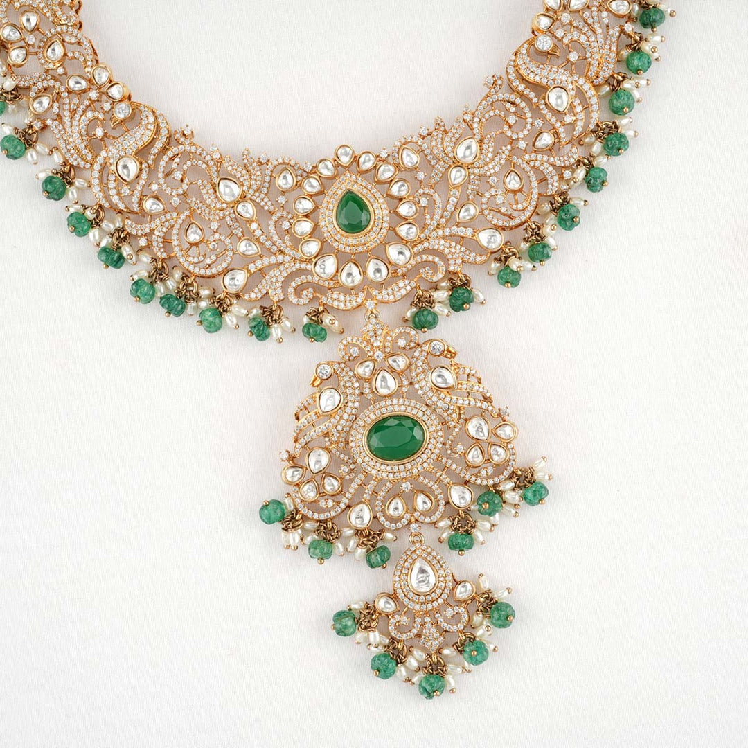 92.5 Silver, Victorian Necklace set studded with Gem Stones and Pearl Beads.