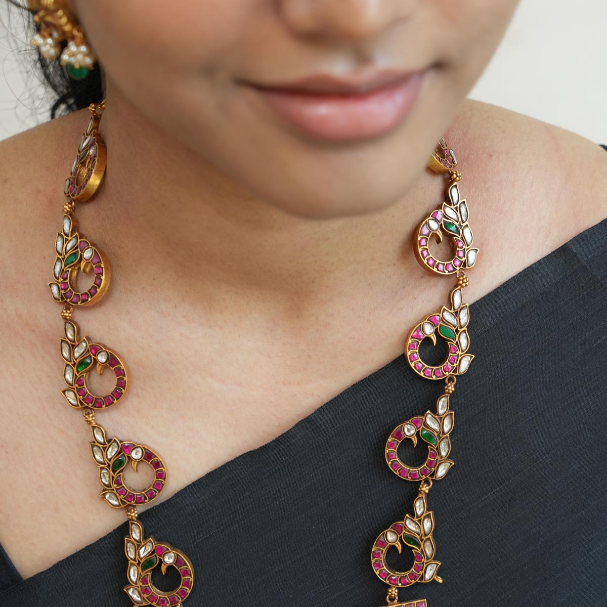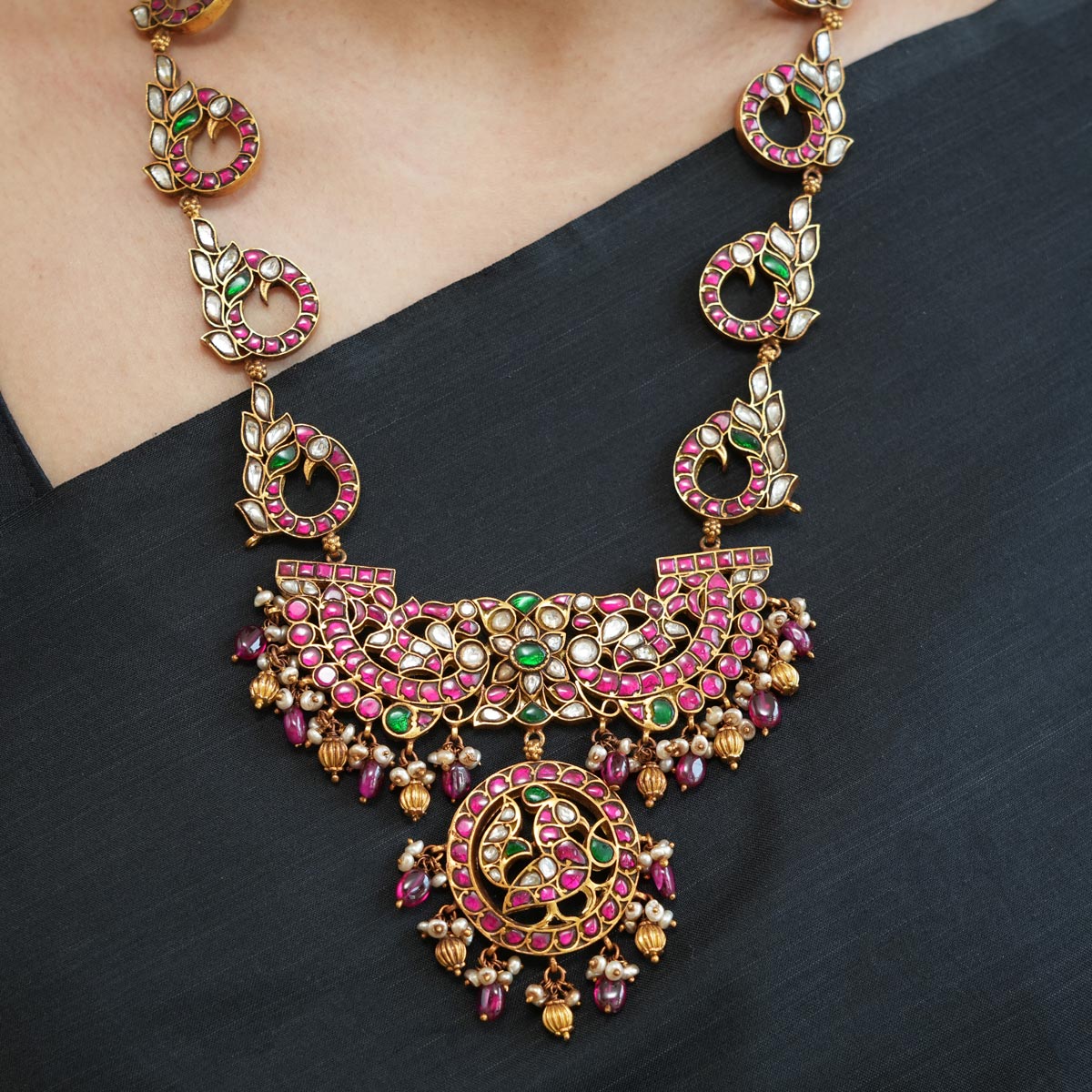 Handcrafted pure 92.5 silver gold plated deep nagas jewelry. This is a fusion of deep nagas and Kundan's work. It takes about 100 days to make this one-of-a-kind masterpiece. We are proud to say that we are the first brand in India to launch this collection.