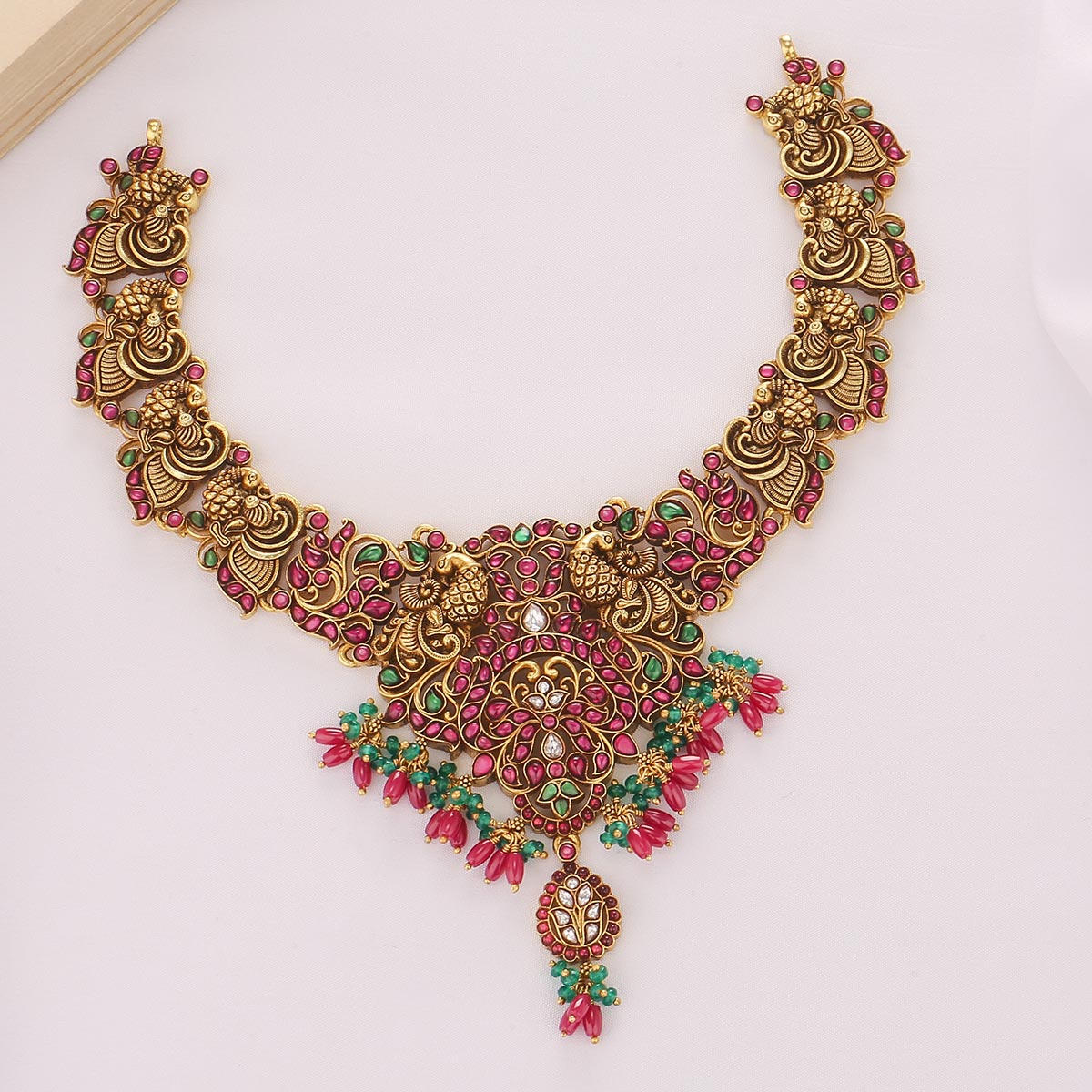Elevate your style with this Majestic Look Nagas necklace. Crafted from 92.5 Silver and 24kt Gold Plated, this set boasts exquisite semi-precious stones for a dazzling effect.