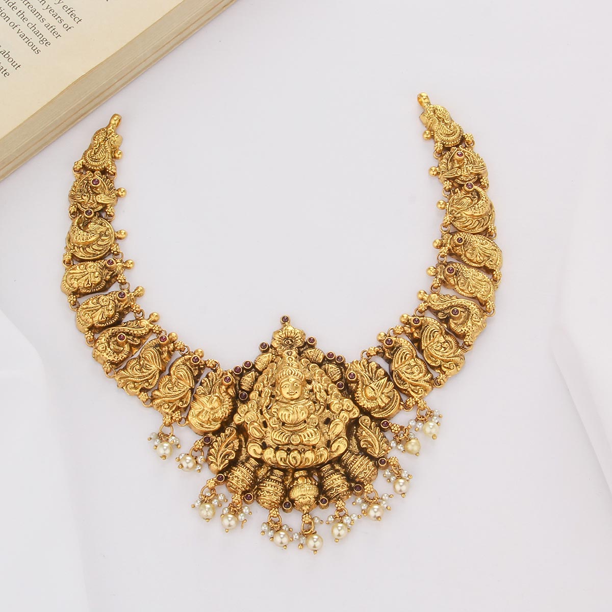 This necklace is made from 92.5 Sterling Silver, accented with semiprecious stones and adorned with a 24-karat gold plating, all on Nagas Jewellery.