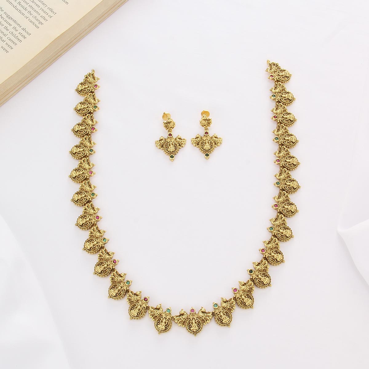 Elevate your style with this Majestic Look Nagas necklace Set. Crafted from 92.5 Silver and 24kt gold-plated, this set boasts exquisite semi-precious stones for a dazzling effect.