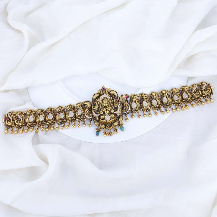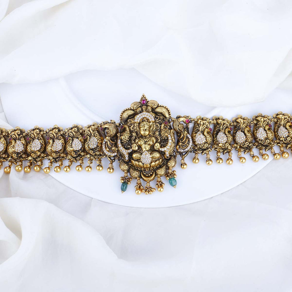 92.5 gold plated nagas oddiyanam/vadanam. this is studded with Semi Precious stones that casts an auspicious blessing on the bride.