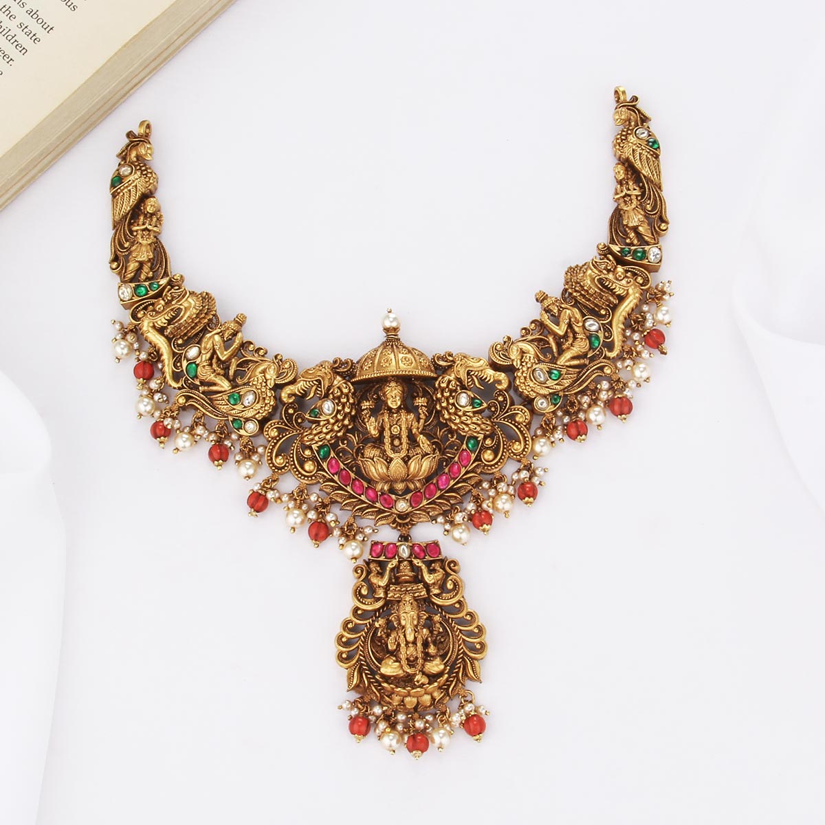 Elevate your style with this Majestic Look Nagas necklace. Crafted from 92.5 Silver and 24kt Gold Plated, this set boasts exquisite semi-precious stones for a dazzling effect.