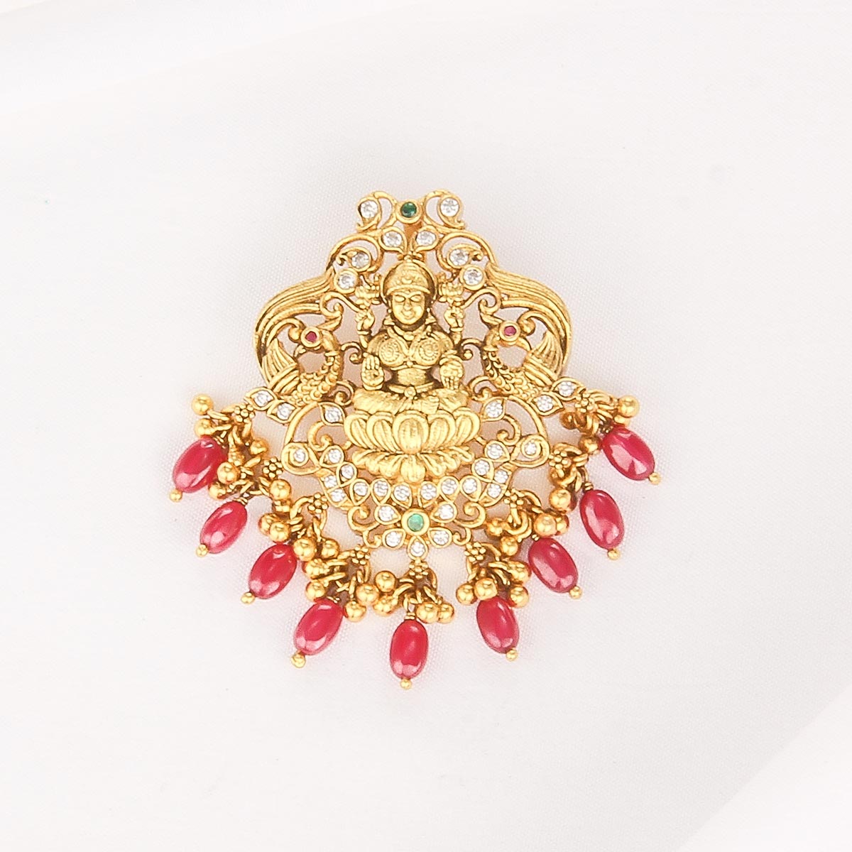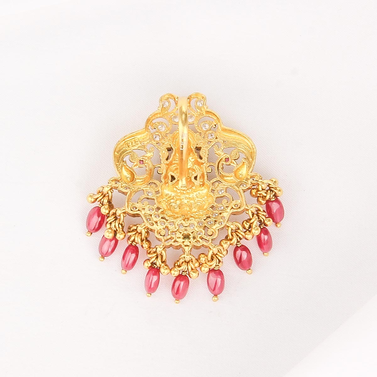 This collection of Nagas Nakshi pendants is handcrafted in 92.5 silver and plated with 24kt gold. It is finely detailed with semi-precious stones, adding a subtle sparkle and perfect finishing touch.