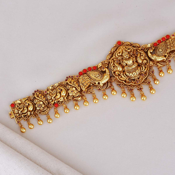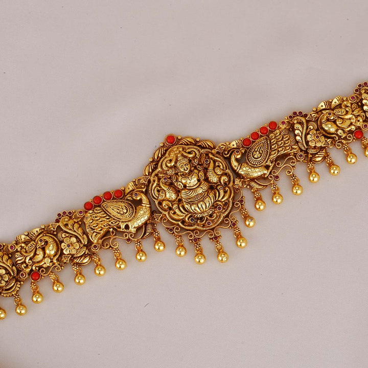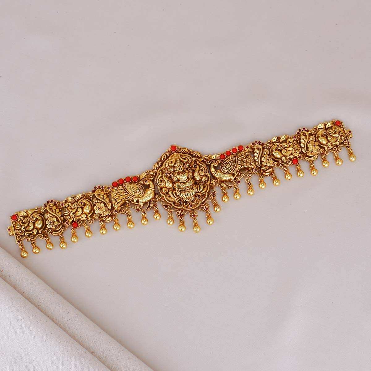 92.5 gold plated with goodness Lakshmi nagas oddiyanam/vadanam. this is studded with Semi Precious stones that cast an auspicious blessing on the bride.
