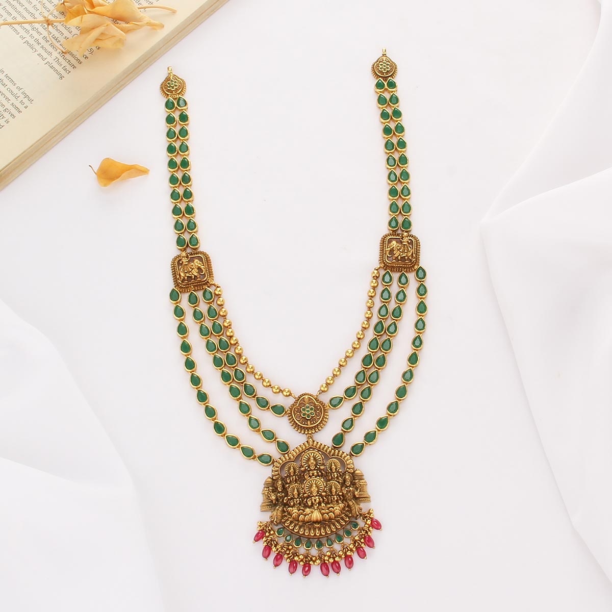 Elevate your style with this Majestic Look Nagas necklace. Crafted from 92.5 Silver and 24kt gold-plated, this set boasts exquisite semi-precious stones for a dazzling effect.