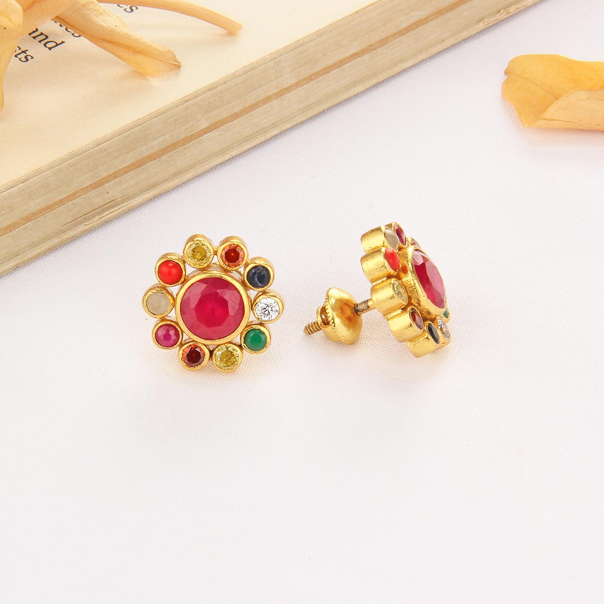 Fabricated from 92.5% sterling silver and 24-karat gold plating, these earrings are adorned with semi-precious stones.