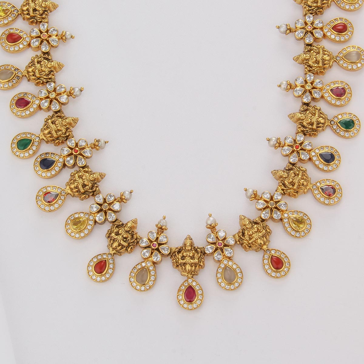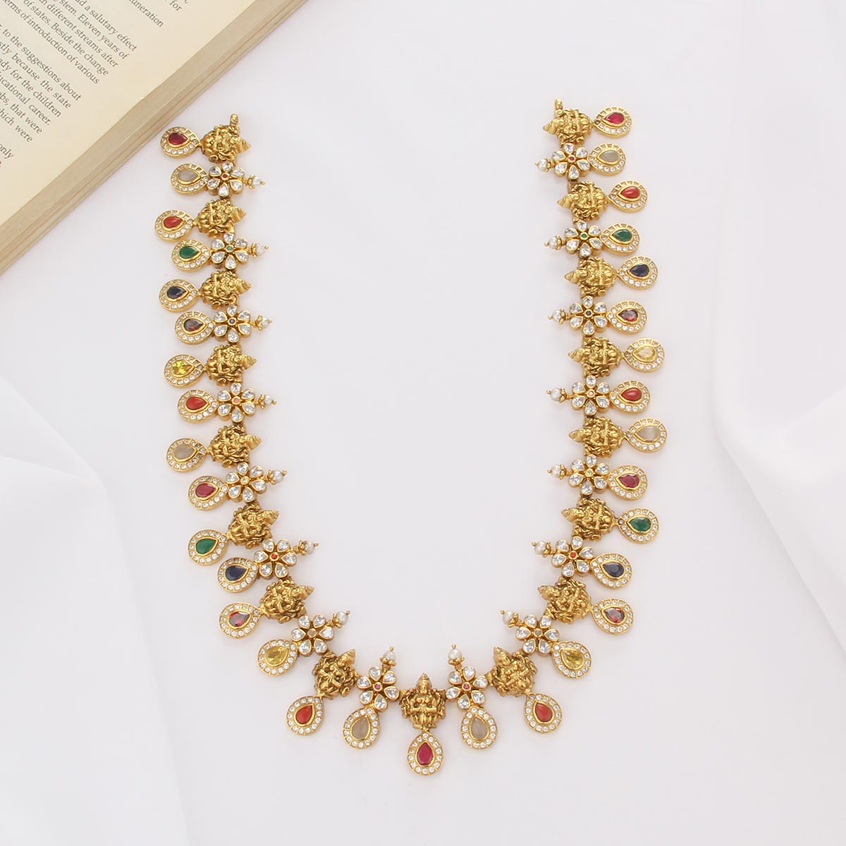 Elevate your style with this Majestic Look Nagas necklace. Crafted from 92.5 Silver and 24kt gold-plated, this set boasts exquisite semi-precious stones for a dazzling effect.