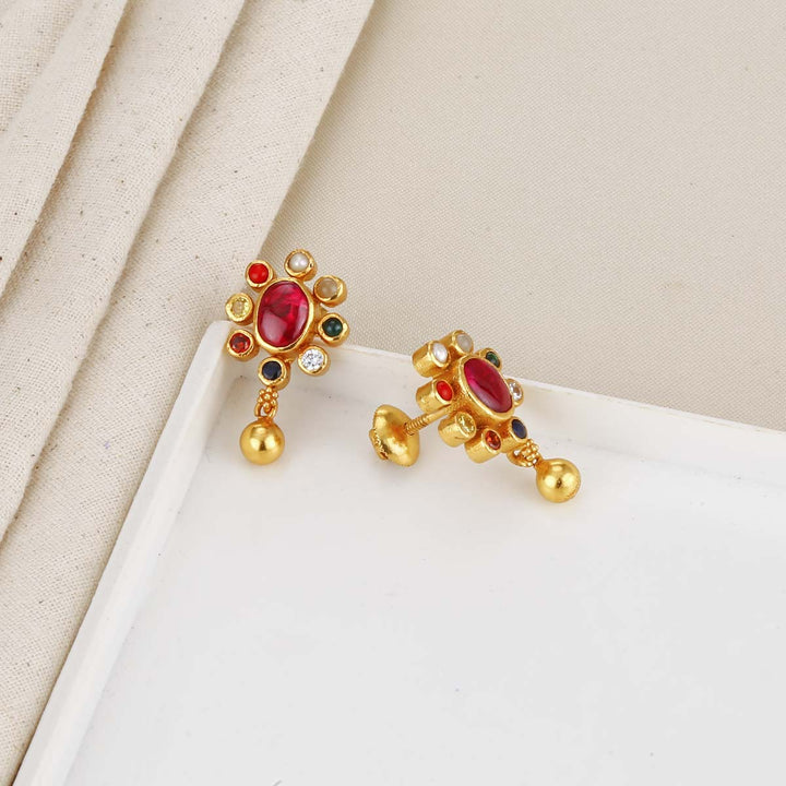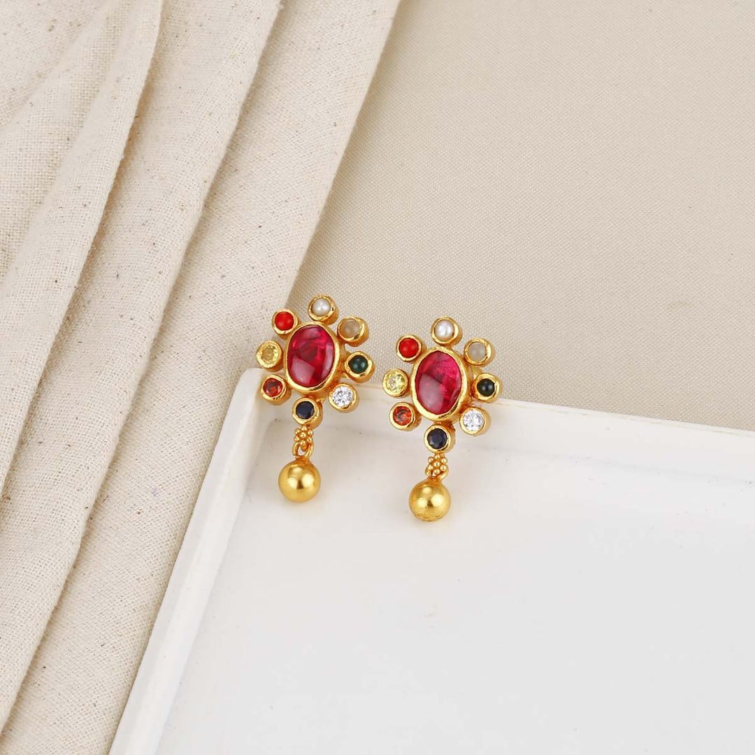 This 92.5 Silver, 24 kt gold-plated stylish Earring is studded with semi-precious stones to make a stunning statement. Perfect for both formal and casual occasions.