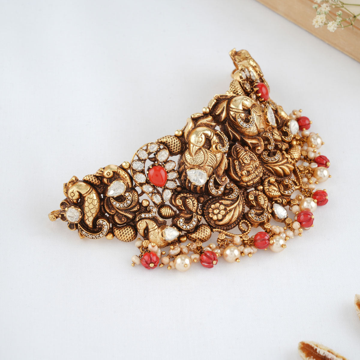 92.5 Silver, gold-plated deep nagas Necklace studded with moissanite stone. Delicately Handcrafted, This is a fusion of deep nagas and moissanite one-of-a-kind masterpiece.