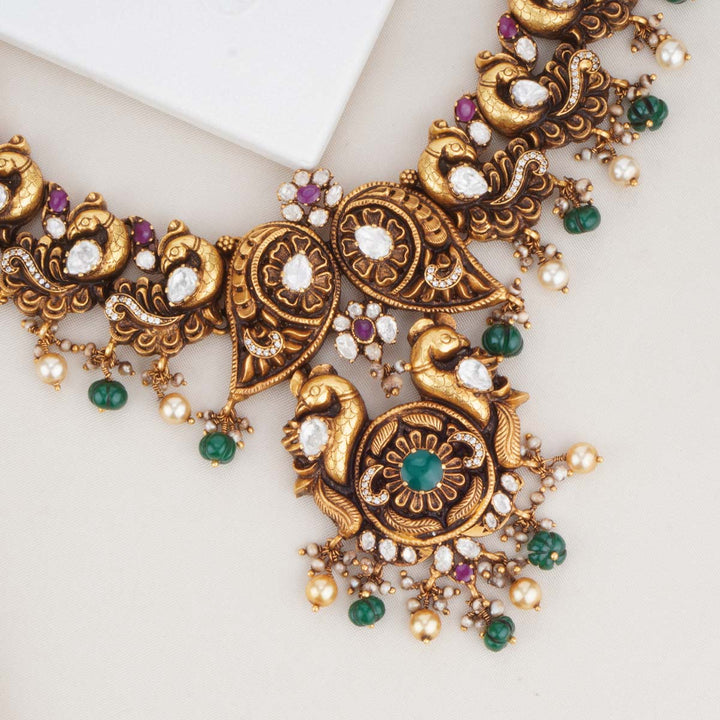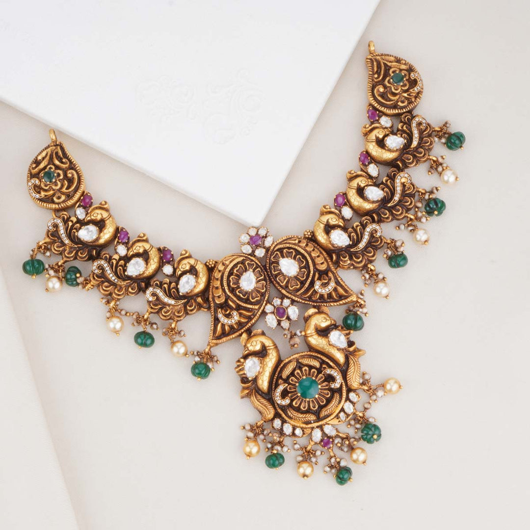 92.5 Silver, gold-plated deep nagas Necklace studded with moissanite stone. Delicately Handcrafted, This is a fusion of deep nagas and moissanite one-of-a-kind masterpiece.