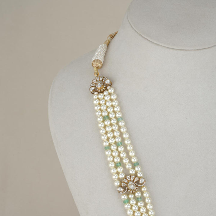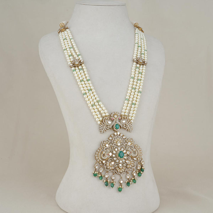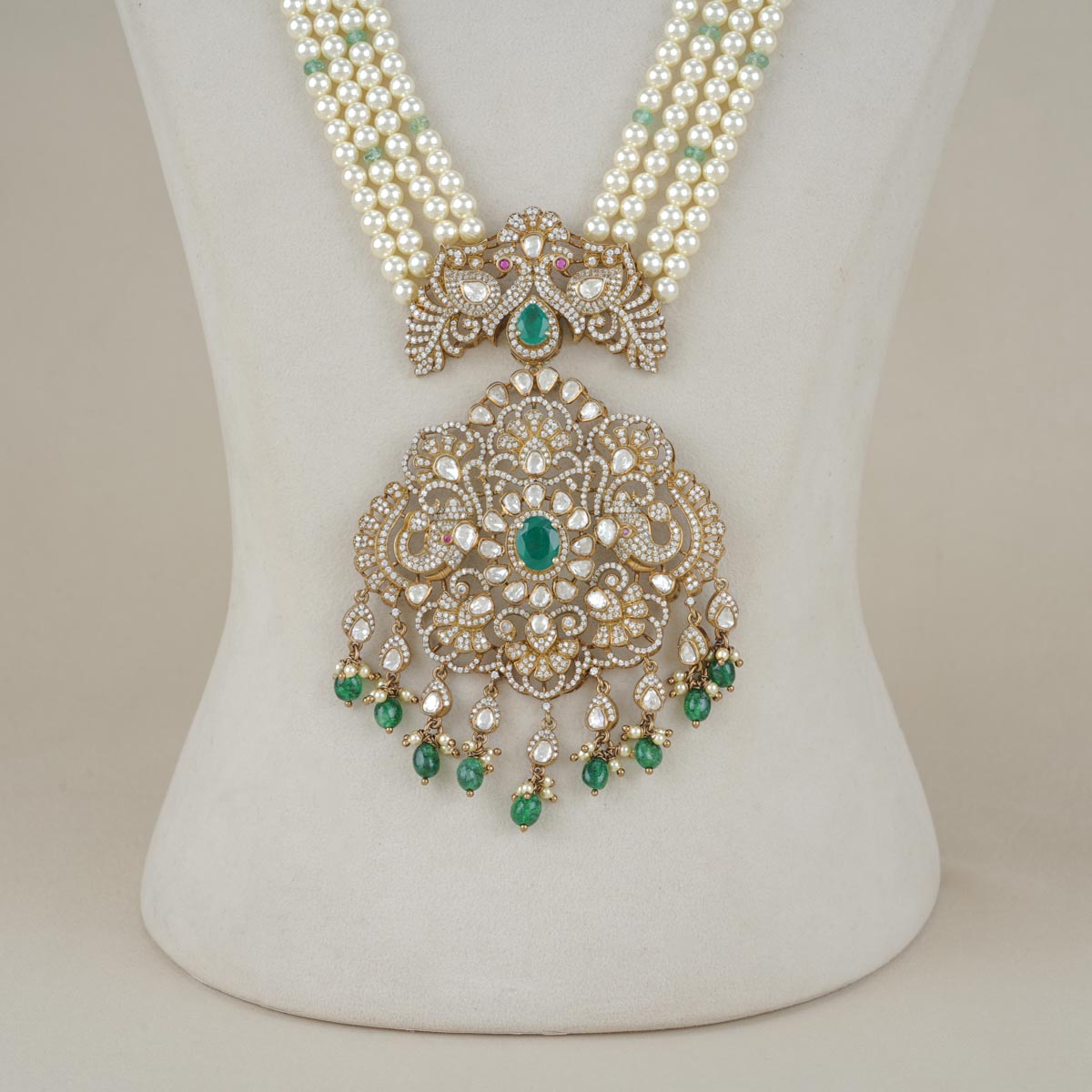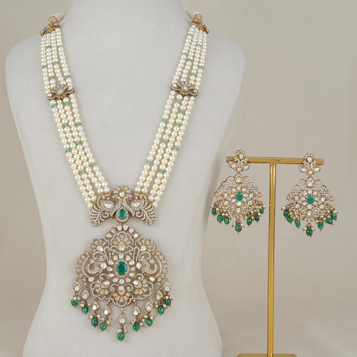 92.5 Silver, Victorian Necklace set studded with Gem Stones and Pearl Beads.