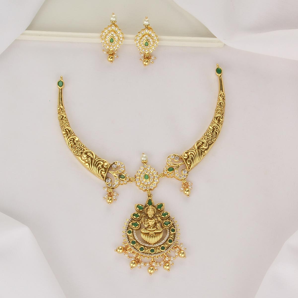 Elevate your style with this Majestic Look Nagas necklace Set. Crafted from 92.5 Silver and 24kt Gold Plated, this set boasts exquisite semi-precious stones for a dazzling effect.