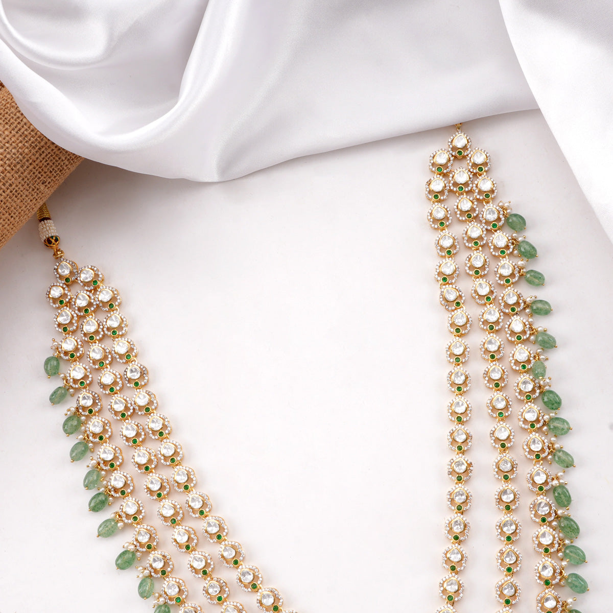 This necklace Set is crafted from 92.5 Silver and features 24-karat gold plating.