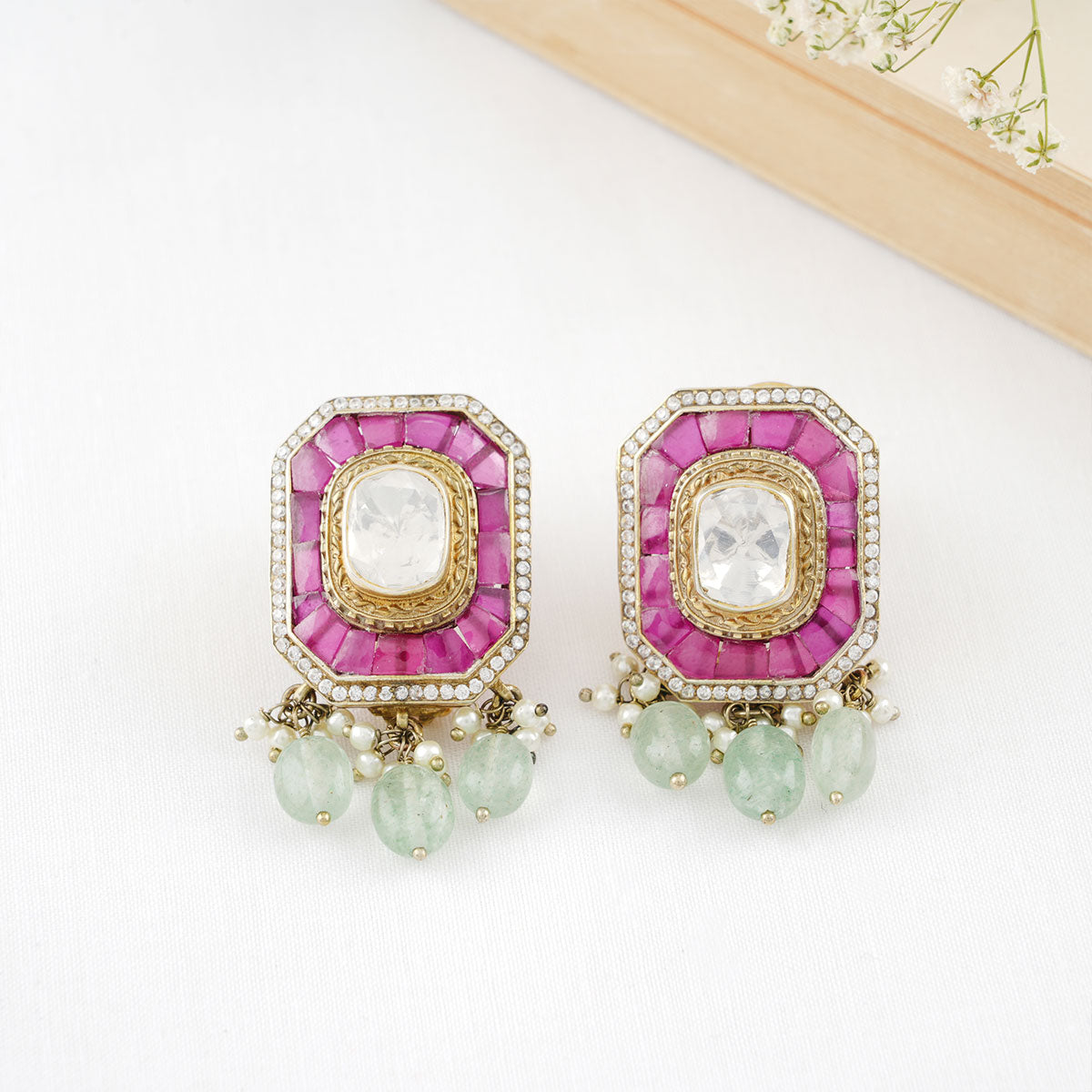 92.5 Silver, Victorian Necklace studded with Gem Stones and Pearl Beads.