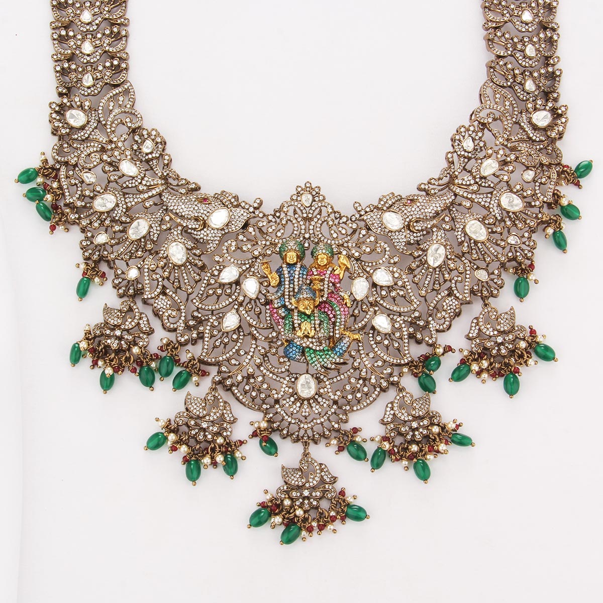 92.5 Silver, Victorian Necklace set studded with Gem Stones and Pearl Beads.