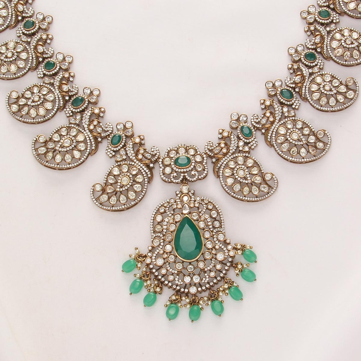92.5 Silver, Victorian Necklace studded with Gem Stones.