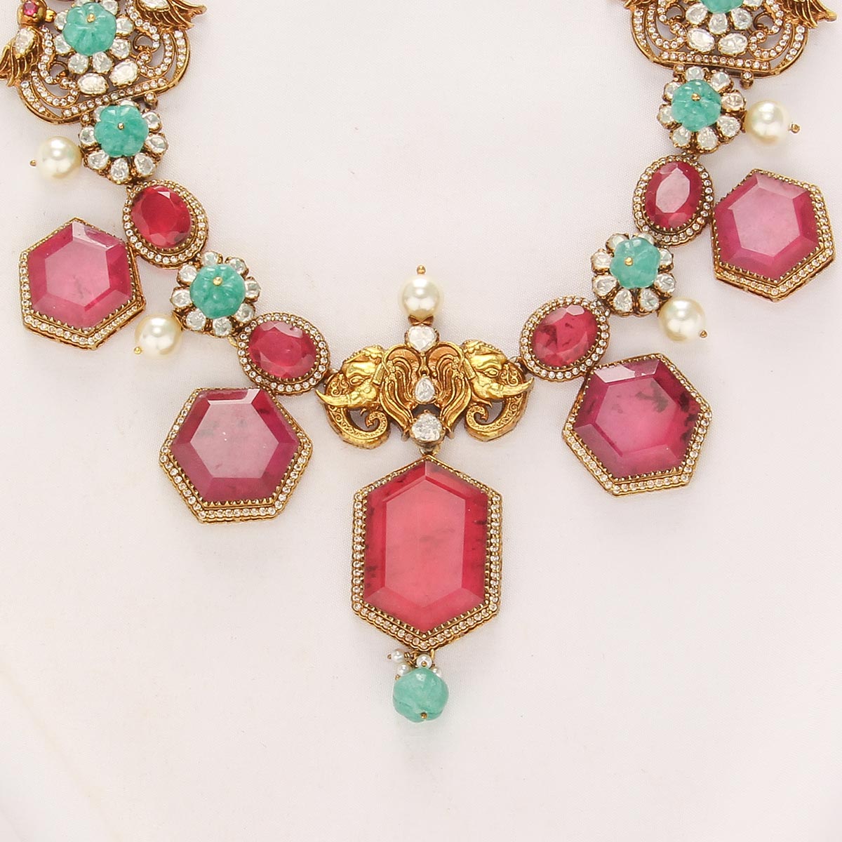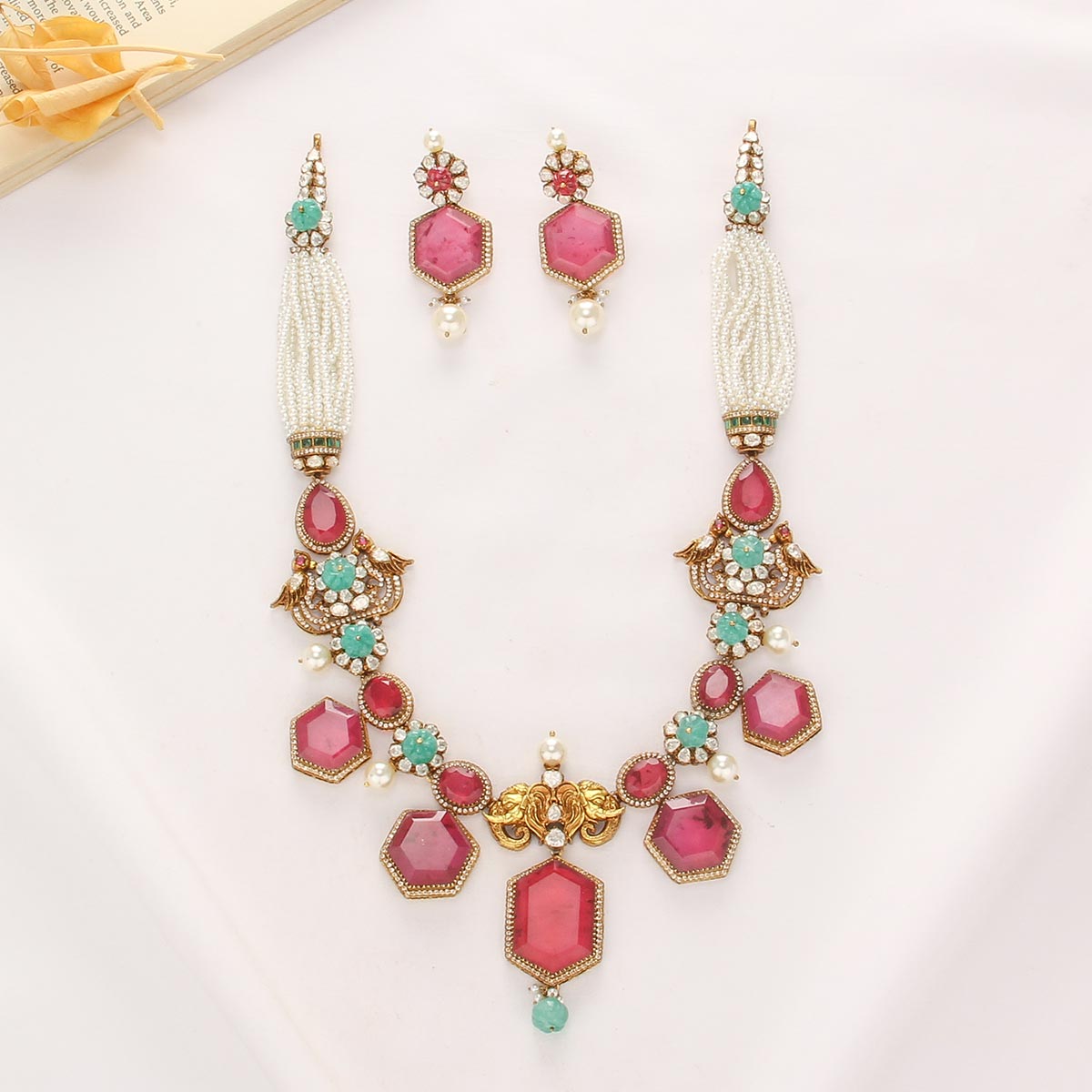This necklace Set is crafted from 92.5 Silver and features 24-karat gold plating.