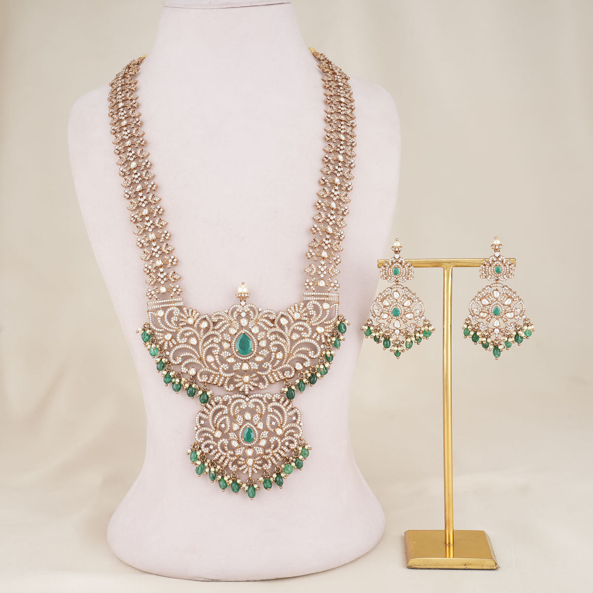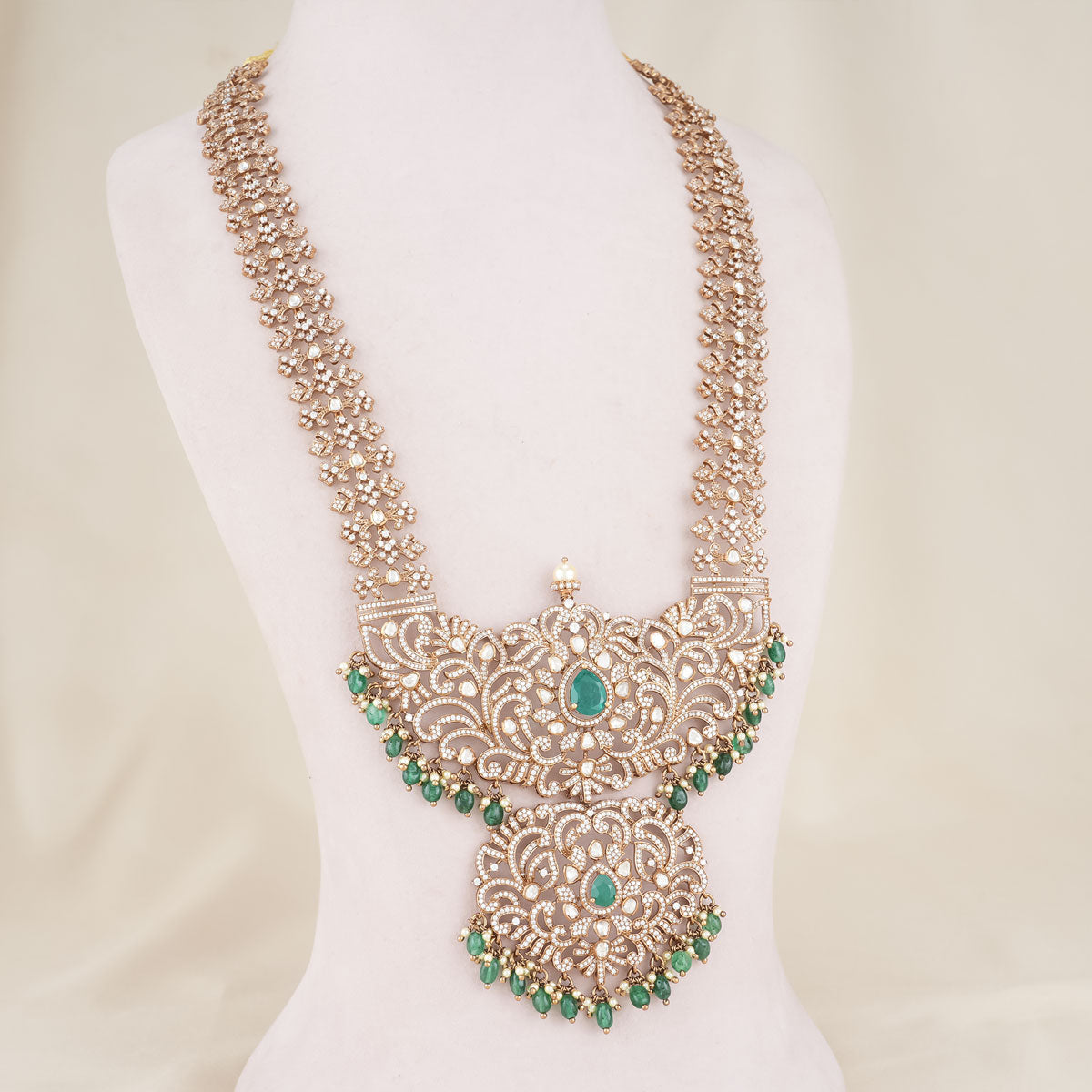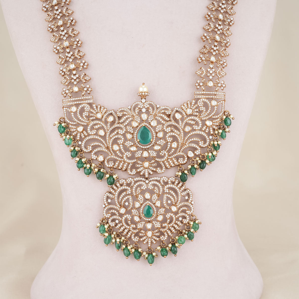 92.5 Silver, Victorian Necklace set studded with Gem Stones and Pearl Beads.