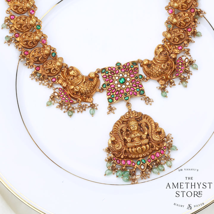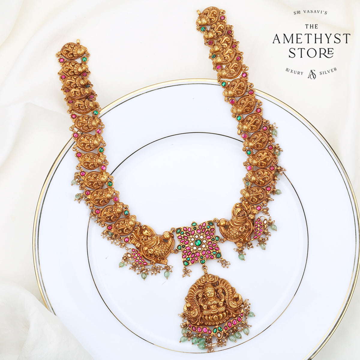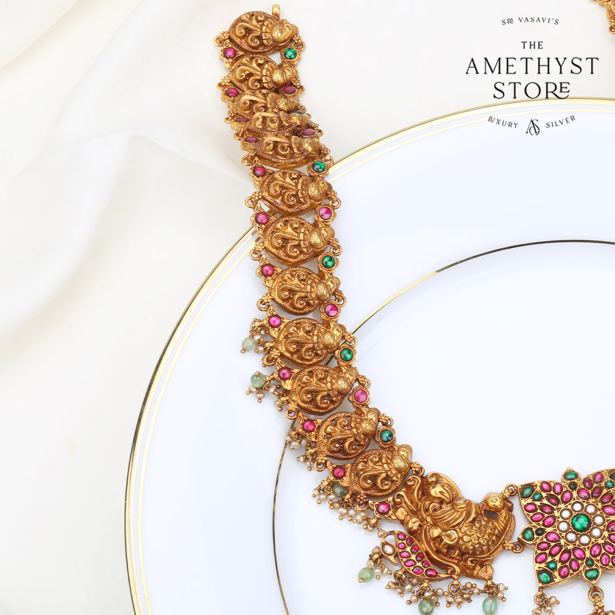 Handcrafted pure 92.5 sliver gold plated deep nagas jewellry. This is a fusion of deep nagas and Kundan's work. It takes about 100 days to make this one-of-a-kind masterpiece. We are proud to say that we are the first brand in India to launch this collection.