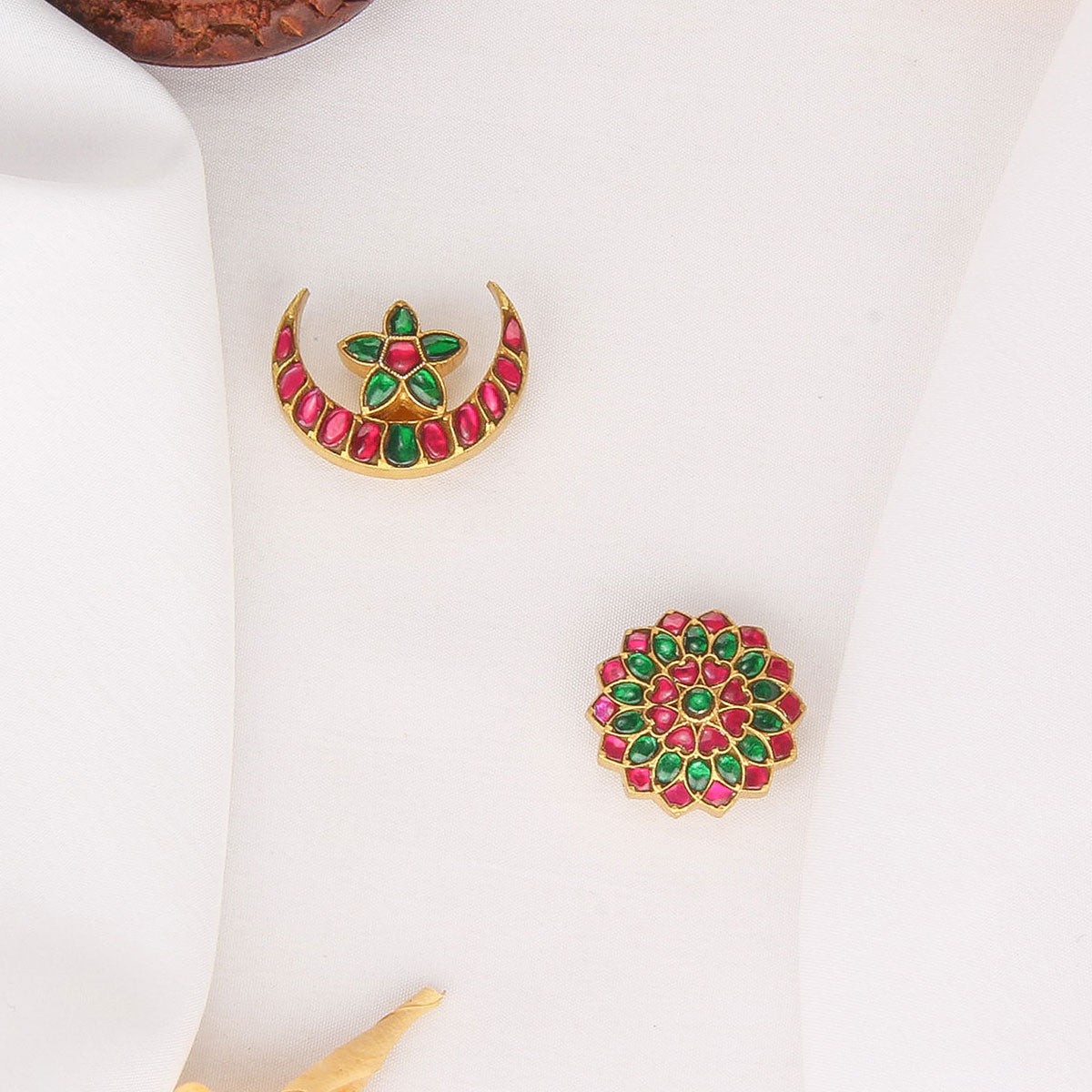 This 92.5 Silver, 24 kt Gold-Plated Jada Billa is adorned with Semi-precious Kundan Stones for an elegant appeal and can be secured using a thread.