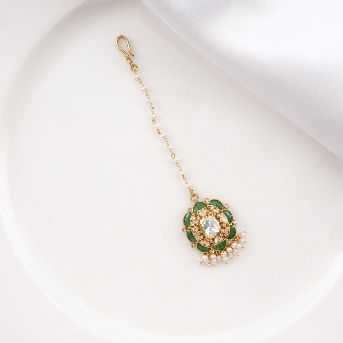 This 92.5 Silver Gold Plated Maangtikka is ideal for a traditional and contemporary look. Featuring detailed designs, this ornament will add a touch of sophistication and shine to any outfit. Crafted with nickel-free and rust-resistant material, it is perfect for everyday wear.
